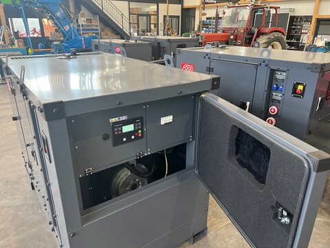 Fogo Dieselgenerator FD32MSTMotor Mitsubishi S4SAlternator Bürstenlos 3 PhasigLeistung 30 kVA // 24 KWGewicht 960 kgAbmessungen 2000 x 1130 x 1450 mmKraftstofftank 210 lSteuerung ComAp InteliLite AMF 25Steckdosen: 2x 230V 16A / 1x 400V 16 A1x 400V 32A / 1x 400V 63AFogo ist europaweit einer der grössten Stromgenerator Hersteller.• Benzin 2-14 KW• Diesel 15-1500 KW• Zapfwelle 16-70 KWIch freue mich auf deinen Besuch in Detligen, gerne können wir die Produkte zusammen anschauen.Markus BeyelerLandmaschinenAG.ch031 333 30 36 // 077 413 70 78, Gewicht:1000