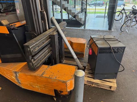 SN: 61-F2X049L00041 Tragfähigkeit: 2.000 kg Eigengewicht: 3.390 kg Hubhöhe lt. Prüfbuch bis 5.155 mm Batteriemasse min: 937 kg, max.: 1.030 kg Batterievolt: 48V Abmessungen ca.: 200 x 180 x 230 cm Betriebsstunden: nicht ablesbar, Batterie vermutlich entleert oder defekt Prüfplakette: nächste Überprüfung: 04/2025 (abgelaufen), Ausstattung: Triplexmast, 2 Stk. Gabelzinken, 1 Stk. Ladestation STILL T400G48/700TB, Seriennummer: 3183691, Frequenz: 50 Hz, Spannung: 400 V, 14 A, BJ: 2000, mit div. Gebrauchsspuren, Signalleuchte oben Schlüssel: 1 Dokumentation: Prüfbuch vorhanden bekannte Mängel: div. Gebrauchsspuren, Abschürfungen und Lackschäden rund um Stapler, Gehäuse vom Zündschloss lose Hinweis: lt. Auskunftsperson funktionstüchtig, jedoch nicht bekannt, ob div. Wartungen und nähere Schäden vorhanden sind, dies müßte vom Interessenten selbst geprüft werden Standort: A-1030 WienKontaktdaten: