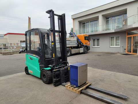 Gebrauchter Elektrostapler Mitsubishi FB25N – Top-Zustand, sofort verfügbar Zum Verkauf steht ein gebrauchter Elektrostapler Mitsubishi FB25N, Baujahr 2021, mit nur ca. 500 Betriebsstunden. Das Fahrzeug befindet sich in sicherheitstechnisch überholtem Zustand und wurde inklusive Sicherheitsüberprüfung aufbereitet. Der Stapler überzeugt durch seine hohe Tragkraft von 2.500 kg, eine Hubhöhe von 4.500 mm sowie umfangreiche Ausstattung, die auch bei anspruchsvollen Einsätzen höchsten Komfort und Effizienz bietet. Technische Daten: Hersteller: Mitsubishi Typ: FB25N / I-1837 Bauart: Elektrostapler Baujahr: 2021 Betriebsstunden: ca. 500 h Tragkraft: 2.500 kg Hubgerüst: Simplex Hubhöhe: 4.500 mm Bauhöhe: 2.800 mm Freihub: 100 mm Ausstattung & Zubehör: Anbaugerät: S11-ZVKG25-S+ angeschraubte Gabeln Gabelzinken: 2.000 × 140 × 50 mm Batterie: 80 V / 775 Ah inkl. BFS (BJ 2021) Ladegerät: inkludiert Zusatzhydraulik: 4 Ventile mit Fingertippsteuerung inkl. Verschlauchung am Mast Kabine mit Heizung und Radio Sitz MSG75 luftgefedert mit Sitzheizung LED-Beleuchtung (2× vorne, 1× hinten) Sonnenrollo Blitzlicht Bereifung: SE 23×9-10 und 18×7-8 (gebraucht) Zustand & Lieferung: Zustand: sicherheitstechnisch überholt Lieferung: ab Werk Gewährleistung: 6 Monate oder 600 Betriebsstunden auf den Antriebsmotor Aktions-Nettopreis: € 35.000,– exkl. MwSt. Zwischenverkauf vorbehalten. Angaben ohne Gewähr.Kontaktdaten: