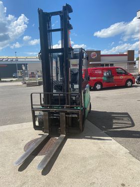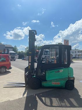 Mitsubishi Elektrostapler FB35N – 3,5 t Tragkraft, Vollkabine, Seitenschub & Zinkenverstellung Zum Verkauf steht ein gebrauchter Elektrostapler Mitsubishi FB35N, Baujahr 2019, mit ca. 6.960 Betriebsstunden. Das Fahrzeug wurde sicherheitstechnisch überholt, inklusive Sicherheitsüberprüfung, und ist sofort einsatzbereit. Mit 3.500 kg Tragkraft, leistungsstarker 80-Volt-Batterie sowie integriertem Seitenschub mit Zinkenverstellgerät eignet sich dieser Stapler optimal für anspruchsvolle Einsätze in Lager, Industrie und Logistik. Technische Daten: Hersteller: Mitsubishi Typ: FB35N / I-1847 Bauart: Elektrostapler Baujahr: 2019 Betriebsstunden: ca. 6.960 h Tragkraft: 3.500 kg Hubgerüst: Simplex Hubhöhe: 4.500 mm Bauhöhe: 3.000 mm Freihub: 100 mm Anbaugerät: Integrierter Seitenschub Zinkenverstellgerät, Öffnungsbreite 1.000 mm Batterie & Ladegerät: Batterie: 80 V / 775 Ah inkl. BFS, Baujahr 2019 Ladegerät: inkludiert Hydraulik & Gabeln: Zusatzhydraulik: 4 Ventile Fingertippsteuerung Gabelzinken: 1.150 × 125 × 50 mm, wellengeführt Ausstattung & Zubehör: Vollkabine mit Heizung STVO-Beleuchtung LED-Beleuchtung: 2× vorne, 1× hinten Blue Spot hinten Sitz MSG75 luftgefedert TILT/C Chassis für seitlichen Batteriewechsel Bereifung: SE 23×10-12 vorne SE 18×7-8 hinten Bereifung neu Zustand & Lieferung: Zustand: sicherheitstechnisch überholt Sicherheitsüberprüfung: inklusive Lieferung: ab Werk Gewährleistung: 3 Monate oder 300 Betriebsstunden auf den Antriebsmotor Preis: € 23.000,– netto exkl. MwSt. Zwischenverkauf vorbehalten. Angaben ohne Gewähr.Kontaktdaten: