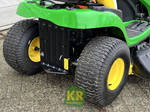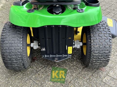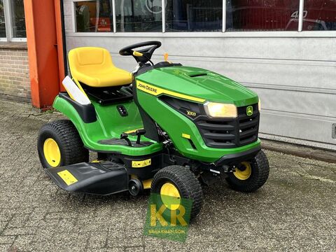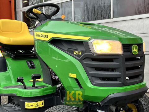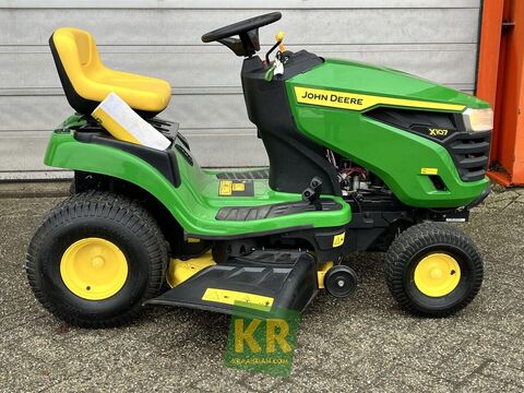 == Overige details (NL) == Quantity: 1 Unit: Stuk Cilinderinhoud: 500 cm³ Maaibreedte: 107 cm - 42 inch Motortype: Briggs & Stratton V 1 cilinder Min Maaihoogte: 25 mm Max Maaihoogte: 100 mm Vermogen: 11,11 KW - 15 PK Aandrijving: Hydrostaat Tankinhoud: 9 Liter Mulching kit: optioneel Opvangsysteem: optioneel Bumper: optioneel De John Deere X107 zitmaaier is het instapmodel uit de X100 serie. Deze tuintrekker heeft een hydrostatische transmissie waardoor rijden een fluitje van een cent is. Het robuuste 42 inch maaidek (107 cm) met zij-uitworp is mechanisch bedienbaar Optioneel is deze gazonmaaier uit te voeren met een mulch-kit opvangsysteem en/of een bumper. Kortom: een zeer complete zitmaaier geschikt is voor het maaien van een gazon tot 4000 vierkante meterKontaktdaten: