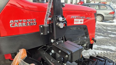 ✨ Antonio CARRARO - Kompakttraktor AKTION ✔️ NEU : PANTHER 26 HF HYDROSTAT ✔️ in serienmäßiger Ausführung ✔️ zum Einführungspreis mit 5 Jahren Garantie!!! ✔️ und mit schwarzen Felgen serienmäßig !! ✔️ mit klappbarem Schutzbügel vorne, ✔️ 3 Zyl. Mitsubishi Diesel-Motor 25PS StufeV, ✔️ 1.318cm³, 76,3Nm bei 2.000U/min., ✔️ mit Flüssigkeitskühlung ✔️ 20l Diesel-Kraftstofftank ✔️ hydrostat. Getriebe mit ✔️ 3 Stufen LOW - MEDIUM - HIGH, ✔️ bequem mit Fußpedalen steuerbar ✔️ 4WD-Allrad, ✔️max. Geschwindigkeit 23km/h, ✔️ Mehrfach-Ölbadscheibenbremsen hinten, ✔️ Hydraulisch Lenkung ✔️ Zapfwelle 540 und 750er Sparzapfwelle ✔️ Hydraulisches Hubwerk mit Zugkraftregelung ✔️ 2 Hydraulikpumpen ! ✔️ 1e für die Lenkung und ✔️ 1e für die Hydraulische Anlage! ✔️ Dreipunkthydraulik Kat.1 ✔️ Hubkraft 900kg ✔️ 1 doppeltwirkendes Zusatzsteuergerät mech. ✔️ 1 LED-Arbeitsscheinwerfer hinten, ✔️ Vorne: 23x8,5-12 Hinten: 280/70R18 ✔️ Aussebreite 1,22-1,27m ✔️ Eigengewicht 1.035kg ✔️ Radstand : 1550 mm ✔️ Gesamtlänge : 2780 mm ✔️ Auf Wunsch auch als 22PS und/oder ✔️ 26PS mit Schaltgetriebe lieferbar!Bereifung vorne: 23x8,5-12
