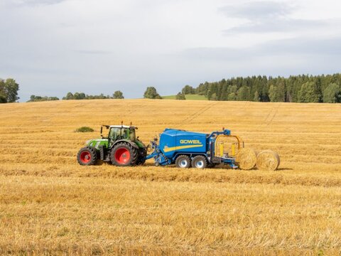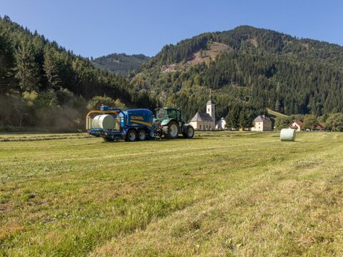 Göweil Die wahrscheinlich härtesten Ballen mit einen Ballengewicht bei Silage mit ca 1200kg, deutlich weniger Netz- und Folienverbrauch und transport fahrten als mit anderen Pressen Göweil Rundballenpresse Wickelkombination - Typ: G-1 F125 Kombi - Festkammerpresse - Ballendurchmesser 1,25m - Pendel-Pick-Up - Pick-Up Breite 2,20m - Doppelrollenniederhalter - Laufruhige luftbereifte Tasträder - 6-Stern Rotor - Rotordurchmesser 570mm mit aufgeschweißten Hardox Zinkenreihe - Hydraulischer Schwenkboden - Schneidwerk mit 30 zweischneidigen Wendemesser - Schnittlänge bis zu 35mm - Hydraulische Balkenabsicherung gegen Fremdkörper - Presskammer 1,20x1,25m mit 18 soliden Presswalzen - 2-reihige Pendelrollenlager - Folien- und Netzbindung - Hydraulisch einstellbare Bremswalze - Automatische Überwachung - 2 Kameras zur Überwachung der Folienbindung - Ballenablage inkl. Farbmonitor - ISOBUS Steuerung - Zentralschmieranlage für Fett und Öl - Tandemachs Fahrwerk - Bereifung 560/45-22,5 - 2-Kreis Druckluftbremsanlage - Zapfwellendrehzahl 1000 U/min - AFC-Auto Flow Control - Überlastsicherung mit 2 Nockenschaltkupplung - Wickelmaschine mit Doppelwickelarm - Ballenablage nach hinten - Folienvorstrecker für 750mm - Folienabschneider - Folienüberwachung - Folienmagazin für 14 Rollen - LED Arbeitsscheinwerfer - Load-Sensing Anschluss (für LS-Betrieb) oder Druckanschluss und druckloser Rücklauf - Straßenbeleuchtung - Gewicht ca. 8980kg Bilder können Zusatzausstattung beinhalten. Optional: - Bereifung 650/40-22,5 - Bereifung 710/35-22,5 - Hydraulische Knickdeichsel - Triebachse - Folienvorstreckeinheit für 500mm und 750mm - Ablagematte - Ballenaufsteller - Ballenstopper - ISOBUS Terminal 4,3" / 7,0" - LED Arbeitsscheinwerfer - Kamerasystem - Siliermittel-Dosierung - Netz und Kombinierte Folienbindung auf den Terminal auswählbar Gerne können wir Ihnen eine Finanzierung über eine Partnerbank anbieten.Kontaktdaten: