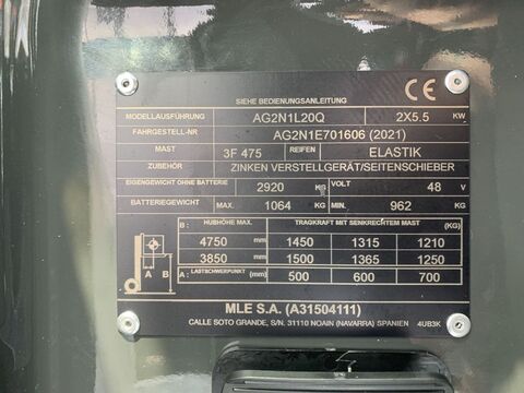 Bauart: Frontstapler / Elektro 3 Rad-Stapler, Tragkraft: 2000kg, Hubhöhe: 4750mm, Bauhöhe: 2110mm, Freihub: 1200mm, Gabellänge: 1200mm, Batterie: Hawker Bj. 2021 48V 750Ah , Bereifung vorne: Superelastik Einfach , Bereifung hinten: Superelastik Zwilling , Anbaugeräte: Seitenschieber, Zinkenverstellgerät, Sonderausstattung: 3. Ventil, 4. Ventil, Arbeitsscheinwerfer hinten, Arbeitsscheinwerfer vorn, Heizung, Lastschutzgitter, Vollkabine,Kontaktdaten: