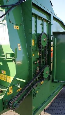 Wolf-Landtechnik bietet einen SIPMA RB 1500 KRUK an. Der angegeben Preis ist für ein Einzelstück aus dem Bj 2024. Die von SIPMA S.A. hergestellte Ballenschneidemaschine SIPMA RB 1500 KRUK dient zum Zerkleinern, zur Futterverteilung oder zum Einstreuen von Stroh, Heu und Heusilage in Ställen oder im Freien. Die universale Konstruktion der Schneidemaschine ermöglicht die Verteilung von Heusilage oder das Einstreuen von Stroh in Ställen und im Freien. Die Ballenschneidemaschine SIPMA RB 1500 KRUK dient zum Zerkleinern der zylindrischen und quaderförmigen Ballen. Der elektrische Treiber in der Schneidemaschine SIPMA RB 1500 KRUK sichert die Steuerung des Vorgangs vom Arbeitsplatz des Schlepperfahrers. Der hydraulisch gesteuerte Auswurfkanal ermöglicht die Leitung des zerkleinerten Materials direkt in die Futtertröge und die Einstellung des Auswurfsbereichs auf eine Entfernung von etwa 15 m (z.B. beim Stroheinstreuen). In der Schneidemaschine SIPMA RB 1500 KRUK besitzt der Drehauswurfkanal eine reibungslose Einstellung der Richtung um den Winkel von 200º. Die Messertrommel zerkleinert das Material und führt es auf die Flügel des Auswurfsrotors zu und sorgt für eine hohe Kapazität und Leistung der Maschine. Die Schneidemaschine SIPMA RB 1500 KRUK hat zwei Schneidetrommeln. Das über der Messertrommel eingebaute Gitter sorgt für eine gleichmäßige Zufuhr des Materials zu der Messertrommel, schützt die Maschine gegen Verstopfen und verbessert ihre Lebensdauer und Zuverlässigkeit. Das mechanische Kettenbodenförderband kann dank dem hydraulischen Antrieb mit der variablen und stufenlos einstellbaren Geschwindigkeit betrieben werden. Die hintere Ladeklappe wird durch einen Hydraulikservomotor betätigt und ermöglicht eine einfache und schnelle Verladung von Ballen auf die Maschine. Das Olstromregelventil im Hydraulikverteiler steuert die Geschwindigkeit des Bodenförderbandes. So können die Seilgeschwindigkeit des Förderbandes an den Typ des zerkleinerten Materials angepasst und die Betriebsleistung der Maschine optimal genutzt werden. Tech.Daten : SIPMA RB 1500 KRUK .Max. Reichweite vom Strohlegen: 15 m .Max. Höhe der Futterverteilung: 2500 mm .Max. Breite des zerkleinernden Ballens: 1500 mm .Max. Durchmesser des zerkleinernden Ballens: 1800 mm .Min. Dauer der Ballenzerkleinerung: 2 min .Zahl der gleichzeitig zerkleinernden Ballen: 2 Stück .Länge der Ladekiste: 2350 mm .Breite der Ladekiste: 1600 mm .Nebenatrieb-Umdrehungen: 540 Umdr./Min .Leistungsbedarf: 60 (80) kW (PS) Zubehör: .Teleskop-Gelenkwelle inkl. Maße: .Länge: 4960 mm .Breite: 2380 mm .Höhe: 2800 mm .Gewicht: 2100 kg Preis: 19.500€ netto Firma Wolf-Landtechnik ist ein autorisierter Händler und Generalimporteur der Firma Sipma S.A. Gern stellen wir Ihnen individuelle Angebote zusammen, sprechen Sie uns an und wir helfen schnellstmöglich weiter. Wolf-Landtechnik GmbH 02827 Görlitz Nickrischer Str. 15 Mobil: 01711001320 Wir sprechen deutsch, englisch und polnisch. Alle weiteren Sprachen können wir nur per mail beantworten! Gern probieren wir es dann zu übersetzen und helfen Ihnen weiter. Wir freuen uns auf Ihre Kontaktaufnahme! Mo.-Fr. 8.00-16.00 Uhr Samstags nach Terminvereinbarung