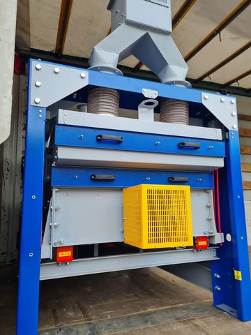 TECHNISCHE DATEN BISS 40-2 (42 T/H) Leistung, t/h: Vorreinigung: 42 Endreinigung: 14 Reinigungsgrad, %: Vorreinigung: 20 % Endreinigung: 80 % Gesamtmaße, mm: Länge: 2070 Breite: 1335 Höhe: 1520 Gewicht, kg: 800 ❗️ Es gibt Kundenreferenzen und Videos des Gerätebetriebs ❗️ 1 Jahr Garantie! Anstelle der traditionellen Hin- und Herbewegung oder Vibration führt der Sortierer eine Drehbewegung in der horizontalen Ebene aus, wodurch die Sortierung effizienter wird und das Getreide gleichmäßig auf dem Sieb verteilt wird. Zusätzlich ist beim BISS-2 ein leistungsstarker Ventilator installiert, der leichte Verunreinigungen entfernt. Das Gerät verfügt über ein oberes und ein unteres Sieb, die überlappend montiert sind, was bedeutet, dass das untere Sieb weiter nach vorne ragt als das obere. Wenn das Korn durch das obere Sieb fällt und auf das untere gelangt, verteilt es sich gleichmäßig über das untere Sieb. Dadurch kann die gesamte Fläche der Siebkammer zur Sortierung genutzt werden. Die Siebe, die in weniger als einer Minute schnell ausgetauscht werden können, können bei uns bestellt werden – sie passen für absolut jede Kultur. Die Siebe bestehen aus hochwertigem Konstruktionsstahl. Dank ihrer Konstruktion und der Bewegungsart bewältigt die Siebeinheit das Entfernen von Stroh hervorragend. Die Maschine und die Siebe bestehen vollständig aus Metall mit einem Metallrahmen – es gibt keine Holzteile. Dadurch kommt es beispielsweise bei der Lagerung der Maschine in einem kühlen Raum wie einer Trocknungskammer nicht zu Verformungen oder Quellungen der Siebe. Das Produkt enthält keine sogenannten „verschleißanfälligen“ Teile wie Federn, wodurch der Sortierer langlebig und wartungsfrei ist. Das Produkt ist das beste auf dem Markt zur Vorbereitung des Getreides für den Handel, zur Reduzierung von DON-Toxinen, d. h. zur Entfernung von Schimmel zusätzlich zur herkömmlichen Sortierung. Dies basiert auf der Rotationsbewegung, die die Kornoberfläche abreibt und ermöglicht, dass eine große Kornmasse im Sieb verbleibt, ohne durch das Sieb hindurchzufallen.Kontaktdaten: