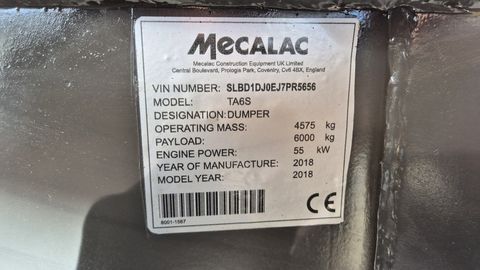 YEAR: 2018 TYPE: MECALAC TA6S WORKING HOURS: 1525 ENGINE: DIESEL JCB - 55KW 4X4 DRIVE AUTOMATIC GEARBOX LIGHTS QUICK AND SLOW MOVING SPEED DUMPER WEIGHT 4575KG CAPACITY 6000KG TYRES 50% DIMENSIONA: 500X221X320CM TOP CONDITION POSSIBLE TEST BEFORE BUY PRICE: 19.800€ NETKontaktdaten: