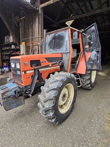 Same Explorer 70 – Der zuverlässige Allrounder für Ihren Betrieb Sie suchen einen ehrlichen, mechanischen Schlepper ohne überflüssigen Elektronik-Schnickschnack? Dieser Same Explorer 70 ist die ideale Wahl für Nebenerwerbsbetriebe, die Grünlandpflege oder als wendiger Hofschlepper. Mit seinen 6.580 Betriebsstunden befindet er sich in einem einsatzbereiten Zustand und bietet die bewährte luftgekühlte Technik, für die Same weltweit geschätzt wird. Technische Highlights & Details Modell: Same Explorer 70 Betriebsstunden: 6.580 h Motor: Kraftvoller und sparsamer 4-Zylinder-Saugmotor (luftgekühlt – extrem wartungsfreundlich) Antrieb: Allrad (4WD) für optimale Traktion in jedem Gelände Getriebe: Robustes Schaltgetriebe mit idealer Abstufung für Feld- und Straßenfahrten Zapfwelle: Heckzapfwelle (540/1000 U/min) Zustand & Ausstattung Geringe Wartungskosten: Durch den Verzicht auf Wasserkühlung entfallen typische Schwachstellen wie Kühlerleckagen oder Frostschutzprobleme. Kabine: Übersichtliche Fahrerplatzgestaltung mit guter Rundumsicht. Hydraulik: Solide Hubkraft am Heck für gängige Anbaugeräte wie Mähwerke, Schwader oder Kipper. Bereifung: [Hier optional Profiltiefe in % ergänzen, z.B. ca. 60%]. Warum dieser Same Explorer 70? Der Explorer 70 ist bekannt für sein hervorragendes Leistungsgewicht und seine Wendigkeit. Mit 6.580 Stunden hat der Motor gerade erst seine "Halbzeit" erreicht – bei guter Pflege sind diese Maschinen für ihre Langlebigkeit bekannt. Er ist die perfekte Lösung für Landwirte, die eine Maschine suchen, die man noch selbst warten kann. Besichtigung & Probefahrt: Der Traktor kann nach vorheriger Absprache gerne besichtigt und probegefahren werden. Überzeugen Sie sich selbst von der mechanischen Solidität!Bereifung vorne: 360/70R24