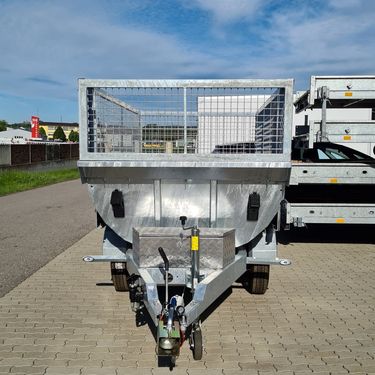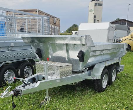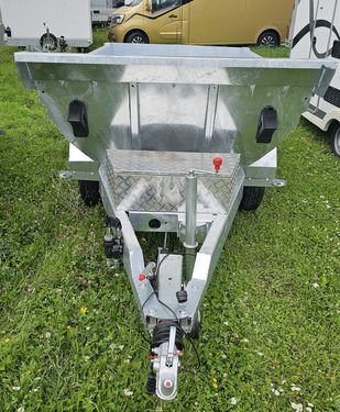 Der Muldenkipper der Marke Sonstige, Modell [Modellname], ist ein hochmoderner und äußerst funktionaler Anhänger, der im Jahr 2025 gebaut wurde. Mit einem beeindruckenden Volumen von 24 Litern und einer Zustandsklasse von 1, was als „besonders gut“ eingestuft wird, erfüllt er höchste Qualitätsansprüche. Dieser Muldenkipper wird zu einem Preis von € 9.900,- inkl. UST angeboten und kommt in Standardausführung. Er hat ein Gesamtgewicht von 3.500 kg, eine Nutzlast von 2.880 kg und ein Eigengewicht von 620 kg. Die Innenmaße betragen 2700 x 1500 x 600 mm, während die Außenmaße 4470 mm x 1920 mm x 1490 mm umfassen. Ausgestattet mit zwei Achsen und gebremsten Rädern der Größe 185R14C 103J 5,0Jx14, bietet er Stabilität und Sicherheit. Die umfangreiche Ausstattung des Muldenkippers umfasst gummigefederte Achsen mit integrierter Stoßdämpfung, eine Auflaufeinrichtung mit Sicherheitskupplung und eine Stützlast von 150 kg. Der 5-stufige Kippzylinder ermöglicht einen sehr steilen Kippwinkel und sorgt gleichzeitig für große Bodenfreiheit. Der komplette Anhänger und die Mulde sind vollverzinkt, was für eine lange Lebensdauer sorgt. Dank der Hydraulikpumpe mit Fernbedienung und Batterie ist die Mulde bequem abkippbar. Weitere praktische Features sind die seitlich aufklappbare Hecktür, 8 Zurranker auf der Ladefläche sowie angeschweißte Haken entlang der Mulde zum Einhängen von Netzen und Gurten. Der Muldenkipper ist besonders robust und ideal für den Einsatz im Bauwesen sowie im Garten- und Landschaftsbau geeignet. Optional sind verschiedene Extras gegen Aufpreis erhältlich: - Gitteraufsatz für € 600,- (€ 720,- inkl. UST) - Plane und Gestell für € 375,- (€ 450,- inkl. UST) - Auffahrrampe aus Stahl mit seitlicher Lagerung für € 350,- (€ 420,- inkl. UST) Das Fahrgestell besteht aus einem verschweißten, feuerverzinkten Grundrahmen mit einer V-Anhängervorrichtung und einer Kugelkupplung. Die Ausstattung wird durch eine Abreißleine, ein höhenverstellbares Automatikstützrad vorne und verstellbare Stützfüße ergänzt. Die Achsen sind von KNOTT/AL-KO und verfügen über eine Auflaufeinrichtung sowie eine Handbremse mit Rückfahrautomatik. Die Beleuchtungsanlage entspricht den Normen der StVO mit einem 12 V-System und einem 13-poligen Stecker. Inklusive sind COC/Fahrzeugpapiere, die eine einfache Registrierung und Nutzung ermöglichen.Zul. Gesamtgewicht (kg): 3500