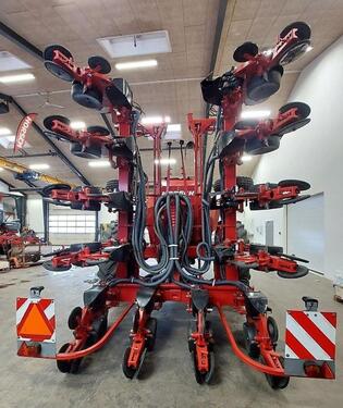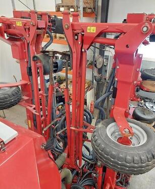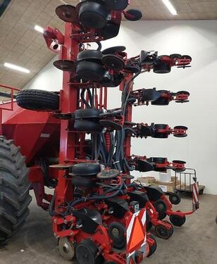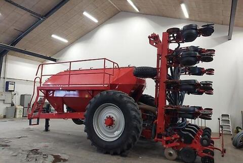 Reihen- / Körperabstand: 75 cm, Flächenleistung: 9900 ha, Reihenanzahl (12-reihig), Mulchsaat ________ mit zentraler Befüllung („Seed on Demand“-System), ie automatische Befüllung aus einem 2000-Liter-Saatguttank, Zusätzlich fasst der Tank 7000 Liter Dünger. Die Sämaschine kann mit bis zu 300 kg Schardruck pro Säeinheit betrieben werden. Die Saatgutverteilung erfolgt reihenweise über das mitgelieferte Terminal mit Teilbreitensteuerung (GPS-Signal vom Traktor empfangen). Radachsenverlängerungen verhindern das Fahren in den Reihen. Ausgestattet mit neuen 520/85R42-Reifen.Reihenanzahl: 12