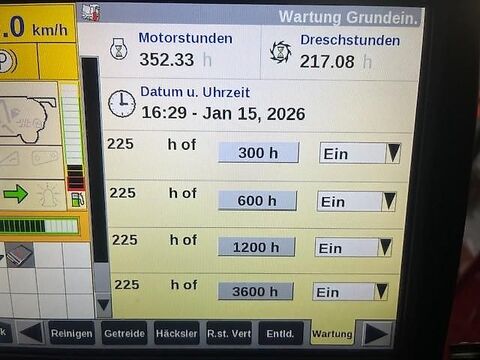 Sehr gepflegter Originalzustand. Mit Schneidwerk Modell 3050 7,62 mtr. und 4-rad gelenktem Schneidwerkswagen, 2x Rapstrenner hydraulisch. Wegen Betriebsumstellung zu verkaufen. Kontakt Ralph Bogdan 0049/170/4308903.Bereifung vorne: IF 800/65 R32