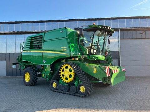 John Deere Mähdrescher T670i, Baujahr 2022, Modell 2023, mit Raupenlaufwerk. Ausstattungsdetails: -KOMFORT + PRÄZISION AG PACKA -PREMIUM-KABINE -ERNTEMONITOR KOMPLETT -PREMIUM-STOFFSITZ -LED-BELEUCHTUNGSPAKET -PREMIUM-RADIO-PAKET -FEUERLÖSCHER-PAKET -AUTOTRAC BEREIT -PRODRIVE 30KM/H DEUTSCHLAND -X-STEER AXLE (NICHT ANGETRIEBEN) -SEKTIONALE KONKAVE -ZWEIBEREICHSANTRIEB (250-465 RP) -STANDARD-REINIGUNGSSCHUH-SIEB -GESCHWEISSTE GITTER (1-6) -11000L KORNTANK 7,20 M -EXTRA-FEINSCHNITT-HÄCKSLER -FEEDERHOUSE HUBZYLINDER 7 -HALBAUTOMATISCHER GABELSTAPLER -VF 520/80 R26 168A8 MICHELIN -DISPLAY KAMERA PAKET -TAILING-LASER-ÜBERWACHUNG -LEDERLENKRAD -RÜCKBLICKSYSTEM -BORDSTEINSPIEGEL RECHTS -FORTSCHRITTLICHER HYDROHANDLE -FOOTPEGS -360° LED-ARBEITSLEUCHTE -LED-ARBEITSLICHTPAKET -INTERAKTIVE MÄHDRESCHEREINSTELLUNG -KETTEN BEREIT MÄHDRESCHER VORBEREITUNG -PREMIUM-KLAPPLEITER -ZYLINDERSCHNECKENSCHLÜSSEL -SICHERHEITS-STRASSENTRANSPORT SCHILD -SAUBERE GETREIDEELEVATOR SLIP CL -VERSTELLBARER SCHWADABWEISER -HYDRAULISCHER SPREUVERTEILER -LADEKLAPPE MIT BREITSTREUWERK -LUFTKOMPRESSOR -ZWEI UNTERLEGKEILE MIT STAUFACH -ÖLKÜHLER MIT HOHER K APAZITÄT -LED-BELEUCHTUNG -HANDWASCHBEHÄLTER 10 L MIT SODA -Inkl. 725X Schneidwerk MAS254450 Preis gilt für vorhandenen Zustand. Angebot freibleibend. Irrtümer , Änderungen und Zwischenverkauf vorbehalten. Alle Angaben ohne Gewähr.Kontaktdaten: