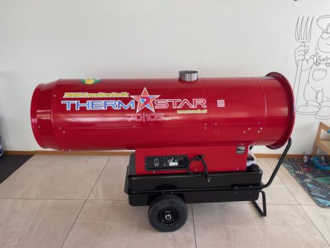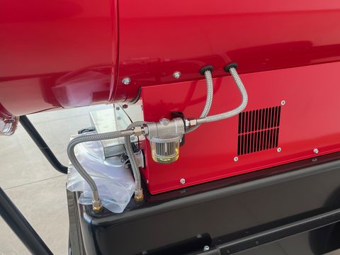 Serienmäßige Ausstattung: • Kraftstofffilter • Tank • Brennkammer aus Edelstahl • 2-Stufiger Brenner • Sicherheitsthermostat bei Übertemperatur • Nachbelüftung zur Brennkammerkühlung • Wirkungsgrad bis zu 93% • Anschluss für Umgebungsthermostat • Geeignet für max. 12 Meter Kanal • Geeignet für geschlossene Umgebungen • Geeignet für Heubelüftung und div. Trocknungen Technische Daten: Anschluss/Frequenz: 230 V~50 Hz Motorleistung Lüfter: 1.820 W Heizleistung: Stufe 1: 71,2kW / 61.235kcal/h Stufe 2 : 105,54kW 90.762 kcal/h Gebläseleistung: 2500m³/h Tankinhalt: 65 l Verbrauch: 6,33-9,3 kg/h Brennstoff: Heizöl oder Winterdiesel Abmessungen L x B x H: 1918 x 731 x 1220mm Gewicht :149kg Heizkanone , Heizung , Frischluftheizgerät , HeizgerätKontaktdaten: