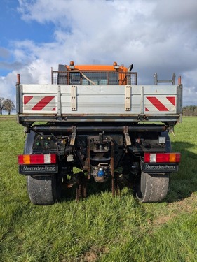 Mercedes U500 (Int. Nr. 15545) Bj 2005 9980 Betriebsstunden 258.000km TÜV neu Schalter / Automatik (V8 / R4) Kabine Heizung Klimaanlage Allradantrieb Kurzer Radstand 2-Leitungsbremse Lenksystem Hydraulisch Ahk 40/50 Bolzen 90 km/h Differenzialsperre an der Vorderachse Anh. Bremsanlage Zweileitung Kühlerschutzgitter hinten Kraftstoffbehälter vergrößert Auspuffrohr nach oben Frontanbauplatte Größe 3 Dauerstromsteckdose 12V / 15A mit C3-Signal ABS - Anhängersteckdose 24V, 7-polig / 5-PinSteckdose vorn 24V, 7-polig Gerätesteckdose 24V (40A) mit C-3 Signal Radio mit Kassettengerät Fahrerhaus Komfortlagerung vornNachschaltgetriebe mit ArbeitsgruppeAutomatic Shift (EAS) Zweikreis-Hydraulikanlage mit EHSHydraulikanlage 4-zellig Hydraulikanlage mit 240 bar SystemdruckKippzylinder Steckeranschluss hinten, 4-Fach Zelle 2+3Druckleitung hinten, 2. HydraulikkreisSeparate Rücklaufleitung hintenSchneepflugentlastungHydr. Steckeranschluss vorne 4-fach, Zelle 1 und 2Hydr. Steckeranschluss vorne 4-fach, Zelle 3 und 4Zusätzliche Druckleitung vorn Separate Rücklaufleitung vorn Carbonsäure-Ester für Hydraulikanlage Tachograf EC, 2 Fahrer mit ZusatzschreiberWegdrehzahlausgleich nach MessergebnisWarnleuchte für TeleskopzylinderBeleuchtung für ArbeitsgeräteZusatzscheinwerfer für FrontanbaugeräteRundumleuchte, Verkabelung und StativMotorleistung erhöht Lichtmaschine verstärkt bei 24 ColtMotor-Zapfwellenantrieb inkl. FrontzapfwelleZapfwellendrehzahlbegrenzung vorn auf 540 1/MinPritsche 2700 x 2240 x 400Schlussquerträger für tiefergesetzte Anhängekupplung Steilschulterfelgen 14.00x22.5 Luxus Fahrer Komfortschwingsitz, luftgefedert mit Sitzheizung und Armlehnen Windschutzscheibe heizbar Fensterheber elektrisch (links und rechts)Weitwinkelspiegel Rampenspiegel STVZO-Code für Zulassung als Zugmaschine / LKWWarnstreifen Rot / Weiß fluoreszierend und reflektierend Warnstreifen an Stoßfänger vorn und FronthaubeWarnstreifen an Bordwand hinten und RückwandKipphydraulik Fahrerhaus Betätigung Differentialsperre Frontanbauplatte Hilfsrahmen - Nieder Kotflügel, breite 2390mm Kraftstofftank - 250L Differentialsperre Scheibenräder 22,5 x 14,00 Hydraulisches Wegeventil - Zweikreis Verbindung Hydraulikanschlüsse VierzelligHydraulischer Steckanschluss vorneHydraulischer Steckanschluss hintenSeparate Rücklaufleitung Kipphydraulik Vierstufig Druckerhöhung 240 Bar (2. Kreis)Anhängersteckdose Tachograf Warnleuchte für Kipperbetätigung Elektrische Betätigung Zapfwellengetriebe vornBetätigung Arbeitsgruppe Kotflügel vorn - Fahrzeugbreite über Kitflügel 2400mm / Räder 31x24 / 22.5 x 14.00Zusatzscheinwerfer Notgeräte mit Halterung Motorkühlung Getriebekühlerleitung Hydr. Kupplung mit Druckverstärker Reifen hinten: 445/65 R22,5 (35%) Reifen vorne: 445/65 R22,5 (40%)Bereifung vorne: 445/65R22,5