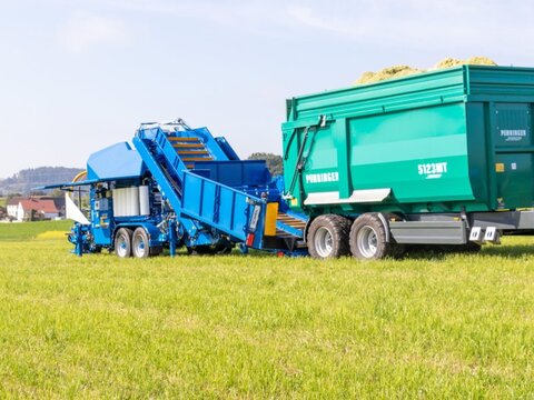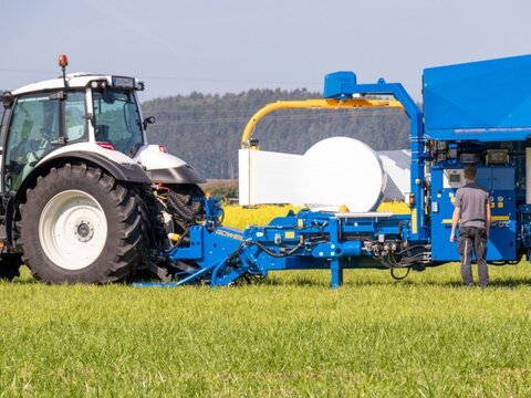 Göweil Rundballenpresse Wickelkombination - Typ: LT-Master F115 - Variable Presskammer - Ballendurchmesser 0,60m bis 1,15m - Hydraulisch angetriebene Presskammer - kombinierte Doppelbindung für Netz und Folie - Hydraulisch einstellbare Bremswalze - Rückführband - Bordhydraulik mit Ölkühler - Wassereinspritzung Zubringer und Dosierung - niedrige Bauweise mit 3,50m Breite - automatisch geregelter Kratzboden - Multicrop Zubringer mit Bunkervolumen 13m³ - Dosiertrommel mit Zuführschnecke Wickler - fahrbarer Wickeltisch übernimmt den Ballen - Doppelwickelarm - Folienvorstrecker für 500mm und 750mm Folien - Folienabschneider - Hydraulisch abklappbare Ballenablagerampe - Handsender mit Funk für Ballenablage - Folienüberwachung und Einfolienbetrieb Steuerung - Terminal PROFI plus L - automatische Zentralschmieranlage für Fett und Öl - Höhenverstellbare Zugdeichsel - 2-Kreis Druckluftbremsanlage - Tandemachsfahrwerk - Bereifung 385/55-22,5 - 80km/h Typengenehmigung - Folienmagazin für 18 Rollen - LED Arbeitsscheinwerfer - Kamerasystem - Gewicht ca. 14800kg Für verschiedenste press- und wickelbare Materialen: Mais, CCM, Luzerne, Getreide GPS, Gras, uvm... Bilder können Zusatzausstattung beinhalten. Optional: - Elektroantrieb - Wiegesystem - Ballenablagerampe mit Ballenaufsteller - Siliermittel Dosierung - Siliermitteltank - 24V Beleuchtungsanlage Gerne können wir Ihnen eine Finanzierung über eine Partnerbank anbieten.Kontaktdaten: