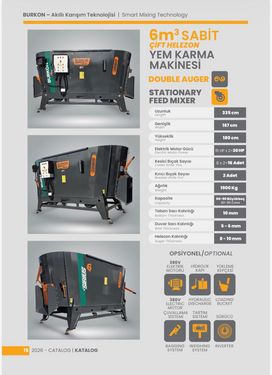 +++Neues Modell+++ Burkon Sirius Static 6 -6,0 m³ Futtermischer mit Doppelschnecke -Elektromotor 2x 10 kW -Stern-Dreieck Anlaufsteuerung -1 x mechanischer Schieber -Elektromotor direkt mit dem Getriebe verbunden -Länge: 3350 mm cm -Breite: 1670 mm -Höhe: 1800 mm -Gewicht: 1900 kg -Messer auf den Schnecken -Gegenschneide 2x -Stärke Wand: 6 mm -Stärke Boden: 10mm -Stärke Schnecke: 10 mm -Optional gegen Aufpreis: -Waage -2. Schieber -Eigenölversorgung für Hydraulik -Förderband von 1m bis 4 m -Austragungsschnecke -Frequenzumformer Die Firma Burkon hat sich seit 30 Jahren auf die Produktion von Futtermischwagen spezialisiert. Mischer Stationär sowie gezogen werden in den Größen von 0,5m³ bis 60 m³ Volumen angeboten. Ein Vergleich mit Durchschnittswerten: Viehbestand: 25 Rinder / 4 m³ Mischer --> Konventioneller Futtermischer, mit Traktor betrieben, täglich 1 Stunde, Verbrauch 8 Liter Diesel. --> Elektrischer Futtermischer, 18 KW Motor, täglich 1 Stunde, Verbrauch 18 kW. Angenommener Dieselpreis € 1,60,–/lt. x 8 x 365 Tage = € 4.672,–/Jahr Angenommener Strompreis € 0,30,–/kW x 18 x 365 Tage = € 1.971,–/Jahr Ergibt ein Ersparnis von € 2.701,–/Jahr Wird zusätzlich Strom aus der eigenen PV-Anlage erzeugt, spart man noch mehr Geld. Wir haben für jeden Betrieb den passenden Mischer. Mehr als 500 verkaufte Anlagen geben uns recht!Kontaktdaten: