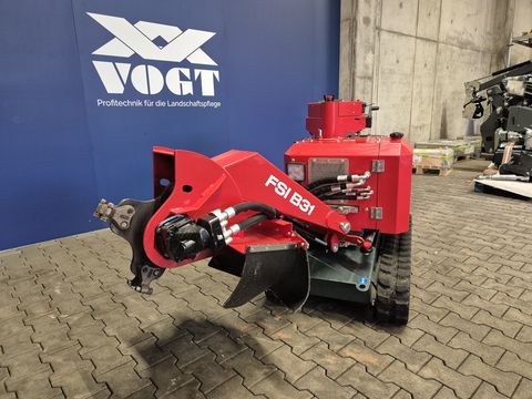 VOGT Profitechnik aus Schmallenberg – Ihr führender Anbieter für professionelle Landschaftspflegetechnik = Mehrere VOGT-Standorte + 100 Servicepartner in Deutschland & Österreich = Eigener VOGT Lieferservice + mobiler VOGT Kundendienst = Schnelle und zuverlässige Ersatzteilversorgung innerhalb 24h = Hohe Qualitätsstandards und ausgezeichnetes Know-How seit 1926 FSI Stubbenfräse Typ: B31/749 TRACK 28 PS (20,6 kW) KOHLER-Benzinmotor TRACK Raupenfahrwerk 1200 mm Schwenkbereich 740 mm Außenbreite 470 mm Fräsrad 8 TRIPLEX-Fräszähne (25 mm Ø) Profi-Stubbenfräse mit Raupenfahrwerk und 28 PS Benzinmotor = flexibel einsetzbare Baumstumpffräse mit einfacher Bedienung und geringem Wartungsaufwand = beeindruckende Fräsleistung dank optimaler Abstimmung von Motorleistung, Antriebsstrang und Fräsrad Großer Schwenkbereich (1200 mm) = effiziente Fräsarbeit ohne umständliches Rangieren des Fräsaggregats = robuster Drehkranz über den Radachsen ermöglicht einfache Handhabung = Schwenksystem mit zwei schweren Hydraulikzylindern 680 mm Fräshöhe / 400 mm Frästiefe = einfache und schnelle Zerkleinerung von hochstehenden Baumstümpfen = vollständige Unterflurbeseitigung von Wurzelausläufern Kompakte Bauweise (nur 740 mm Außenbreite) = auch in verengten Einsatzbereichen flexibel einsetzbar = entwickelt auf Basis europäischer Maßeinheiten (metrisches System) 28 PS (20,6 kW) KOHLER-Benzinmotor = leistungsstarker und zuverlässiger Benzinmotor = geringer Kraftstoffverbrauch dank elektronischer HIGH-EFFICIENT Kraftstoffeinspritzung = stabile Motoraufhängung mit Vibrationsdämpfern TRACK Raupenfahrwerk = hydrostatisch angetriebenes Kettenfahrwerk = gegenläufiges Raupenfahrwerk sorgt für gute Manövrierbarkeit und hervorragende Geländegängigkeit = schmale Spur in verengten Einsatzbereichen (z.B. zwischen Hindernissen) = schneller & einfacher Transport (z. B. PKW-Anhänger etc.) = integrierte, hydraulische Bremse für einen sicheren Stand im Gefälle = innenliegende, geschützte Anbringung des Hydraulikblocks Hydraulischer Direktantrieb für Fräsrad = leistungssstarker Kolbenmotor mit hohem Wirkungsgrad = mit Soft-Start-Ventil = integrierter Ölkühler für optimale Leistung bei hohen Temperaturen = auch bei extremen Belastungsschwankungen äußerst zuverlässig = Hydraulikmotor optimal auf Fräsaggregat abgestimmt = zusätzliche Betriebssicherheit dank Freilauf und Überdruckventil POWER CUT Frässcheibe (470 mm Ø) = speziell gehärtete Frässcheibe aus verschleißfestem HARDOX-Stahl = versetzte Anordnung der Fräszähne (jeder Zahn fräst separate Spur) = große Schnitttiefe (37 mm) durch effiziente Fräszahn-Anordnung = sternförmige Bauweise verbessert Materialabtransport in Bodennähe bei gleichzeitig weniger Kraftaufwand = SKF-Speziallagerung (konisches Kugelrollenlager) mit Dauerschmierung = 3-seitiger Klappsicherheitsschutz für Frässcheibe 8 TRIPLEX Fräszähne (25 mm Ø) = lange Standzeiten und einfache Wartung = Außenseite des Zahns (Fräskante) kann bis zu 3-mal gedreht werden = verschleißfeste Wolframcarbid-Hartmetall-Beschichtung = Fräszähne sind einzeln drehbar und austauschbar (schneller Wechsel) = robuste Zahnhalter sind fest auf dem Fräsrad fixiert (wartungsarm) HIGH-PRECISION Steuerung = voll-proportionale, feinfühlige Steuerung mit einzigartiger Präzision = Steuerung aller Bedienfunktionen (Fahren + Fräsen) = schwenkbare Bedienkonsole garantiert sehr gute Sicht auf das Fräsrad = vibrationsarme, rutschfeste Handablage mit AUTO-STOP-Funktion (Fräsrad stoppt direkt bei Nicht-Betätigung) EASY SERVICE = wartungsfreundliche Konstruktion dank hydraulischem Fräsradantrieb = keine tägliche Wartung erforderlich = einfaches und schnelles Drehen bzw. Wechseln der Fräszähne = alle Wartungspunkte (Schmierstellen, Motor) gut zugänglich Weitere Serienausstattung = stufenlos einstellbare Schwenkgeschwindigkeit = Spritzschutz (minimiert Wurfkörper-Gefahr) = LED-Arbeitsbeleuchtung = Betriebsstundenzähler = Pulverbeschichtung (abriebfest und widerstandsfähig) FSI Profi-Stubbenfräsen made in Denmark = Europas führender Hersteller für professionelle Baumstumpffräsen = 100% Fokus auf Stubbenfräsen (keine weiteren Produktionslinien) = enge Zusammenarbeit zwischen VOGT und FSI Für Rückfragen und weitere Informationen stehen wir Ihnen telefonisch oder per Mail jederzeit zur Verfügung. Bei näherem Interesse besuchen Sie gerne einen unserer VOGT-Vertriebsstandorte, damit Sie sich persönlich von der Leistungsstärke der Maschine überzeugen lassen können. Wir freuen uns auf Ihre Kontaktaufnahme! "SONDERPREIS auf Vorführmaschine" Gerätezustand: Vorführgerät Baujahr: 2024 Seriennummer: 007030 Irrtümer, Änderungen und Zwischenverkauf vorbehalten.Kontaktdaten: