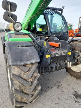 1 Gebrauchter Teleskoplader Hersteller: JLG Manufacturing Europe BVBA (Belgien) Modell: Deutz-Fahr Agrovector 35.7 Seriennummer: YC500001160005686 Erfassungsnummer: 174684 Erstzulassung: 03.08.2015 Betriebsstunden: 11.320 h Motor: Deutz-Dieselmotor Leistung: 74 kW / ca. 100 PS Hubkraft: 3.500 kg Stapelhöhe / Hubhöhe: 7,0 m Eigengewicht: ca. 7.000 kg Antrieb: Allrad Allradlenkung (4-Rad) Euroaufnahme (EURO-Schnellwechselrahmen) Hydraulische Geräteverriegelung Joysticksteuerung mit Multifunktionsgriff Arbeitsscheinwerfer vorne und hinten Rundumleuchte Kabinenheizung + Lüftungssystem Load Moment Indicator (Lastmomentanzeige/LMI) Ackerschiene mit Zugmaul Hydraulikanschlüsse am Auslegerkopf Fahrersitz (Bezug beschädigt) Bereifung: 460/70 R24 - Alliance Die Maschine läuft und ist funktionsbereit, weist jedoch dem Alter entsprechend Gebrauchsspuren auf. Verkauf ausschließlich im Ist-Zustand, wie besichtigt, ohne jegliche Gewährleistung. Maschinenstandort: Robert-Bosch-Straße 13, DE-74585 Rot am See _______________________________________ Anzahl Zylinder Motor = 4 Zylinder Hubraum = 4 Antrieb = hydrostatisch Allrad = Ja Lenkung = 4 Rad Straßenzulassung = Ja Geschwindigkeit = 35 Max. Geschwindigkeit Zulassung = 35 Bereifung = 460/70R24 Hersteller Bereifung vorne = Alliance Bereifung vorne = 460/70R24 autom. Anhängevorrichtung = Ja Steuergerät dw = Ja Hydraulikleitung = Ja Hubkraft = 3,5 Hubkraft = 3500 Hubhöhe = 7 Hubhöhe = 7 Werkzeugverriegelung hydr. = Ja Schnellwechselaufnahme = JaKontaktdaten: