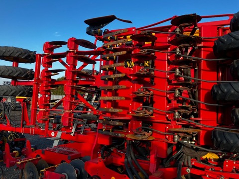 gezogene Drillmaschine, 6,00 m Arbeitsbreite, pneumatisch, Einscheibenschare, Exaktstriegel, Fahrgassenschaltung, Vorauflaufmakierung, Spuranreißer, Spurlockerer, Tankinhalt: 3000 Liter, Zwischenreifenpacker, Crossboard, elektr. Saattiefeneinstellung, Vorwerkzeug: Kurzscheibenegge, Bedienteil, Flächenleistung: 3720 ha,Kontaktdaten: