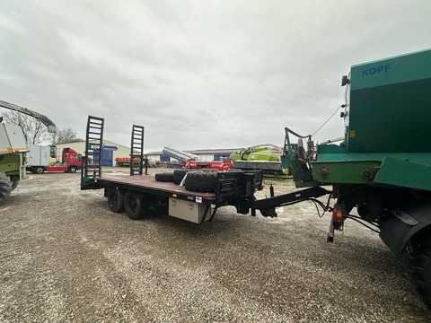Müller Tandemanhänger Typ ETUTAS 40,60,80 km/H(Int-Nr.: 14302) Baujahr 1990 38er Zugöse, Staukasten, 8 Zurrösen, Auffahrrampen hydraulisch, Stützen an Rampe, höhenverstellbare Deichsel, Ersatzrad, Bordwand vorne 0,3 m hoch, Rampenlänge 2,5 m Bereifung 8.25 R16 30-60 % 7,8 Tonnen Stützlast 1000 kg Leergewicht 2550 kg 6,0 m lang 7,3 m breit 0,95 m hoch Es handelt sich hierbei lediglich um eine Anzeige, die zu Informationszwecke dient. Der Kaufvertrag kann nach unseren AGBs mit uns abgeschlossen werdenKontaktdaten: