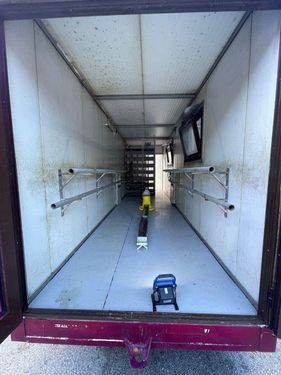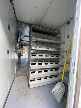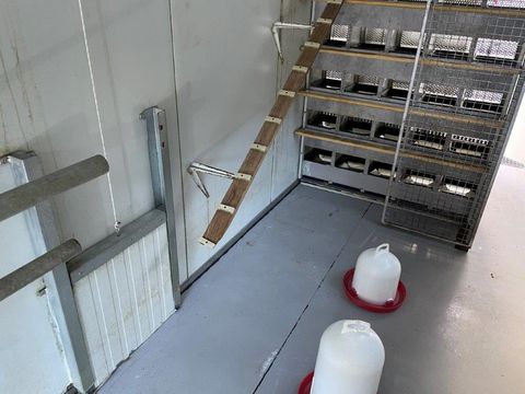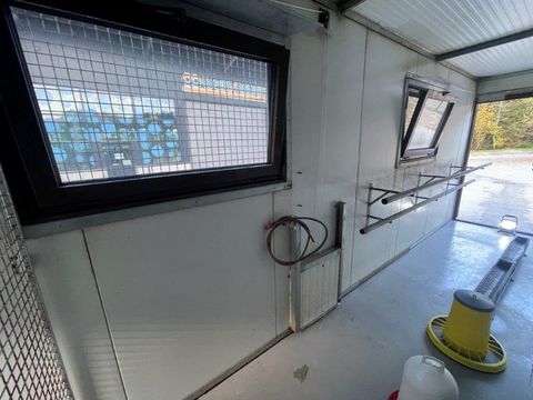 Hühnerstall Fahrbar Größe: Länge: 7500 mm Breite: 2000 mm Höhe: 3050 mm Aufgebaut auf Stahlrahmen Wände: Isolierte Paneel Profile 60 mm Stärke Dach: isolierte Paneel Profile 100 mm Stärke Legenester 30 Stück zum rückseitigen Entnehmen Wasser Anschlüsse, Strom und Ventilator sowie Lichtbalken Boden isoliert und mit Blech ausgelegt zur einfachen Reinigung Eingang mit Treppenrost und Hühnerauslauf zum Aufstecken Öffnungen Hühnerauslauf sind beidseitig vorhanden Der Wagen war erst einmal im Einsatz mit ca. 100 HühnernKontaktdaten: