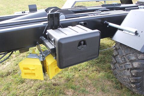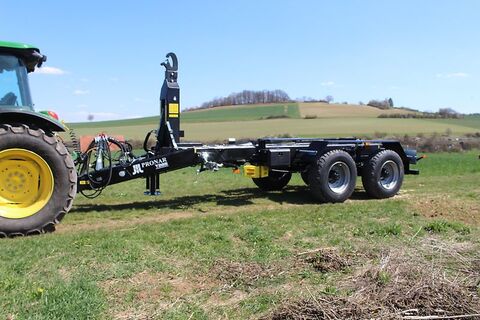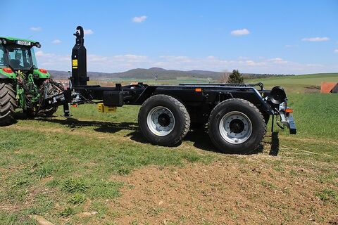 Serienmäßige Ausstattung: ===================== Tandemfahrwerk Starre Achsen Untenanhängung, Starre Deichsel mit Zugöse Ø40 Hydr. Stützfuß mit Kugelventil (Hydr. Anschluss nur sporadisch brauchbar) 2-Leiter Druckluftbremse, Trommelbremsen 406x140 Kurbelbremse Haken mit automatischer Containerverriegelung und einstellbarer Höhe (2 Positionen) - für Container nach DIN 30722 und SS 3021 Beleuchtungsanlage 12V mit seitlichen Umrissleuchten Rücklichter mit Schutzgitter Ein Schlepper mit mind. 3 Hydraulikanschlüssen erforderlich (Sperrung der Aufhängung, Kipprahmen, Hakenrahmen) Mechanische Containerverriegelung (für Container nach DIN 30722) Hydraulische Kippanlage mit mechanischer Einstellung für das Absetzen und Kippen des Containers Hydraulische Hinterachsabstützung Hinterer Unterfahrschutz in 3 Positionen mechanisch einstellbar (abhängig von der Containerlänge) Keile mit Halter Zusätzliche Ausstattung gegen Aufpreis möglich: ===================================== Kugelkupplung K80 Teleskopstützfuß mit Getriebe Hydraulische Containerverriegelung Hintere Bremsanschlüsse Hinter Hydraulikanschlüsse Metallkotflügel Werkzeugkasten weiteres Zubehör möglich. Preis zuzüglich Vorfracht und Betriebserlaubnis. Fordern Sie unsere Prospekte an. Wir beraten Sie gerne. Besuchen Sie unsere ständige Ausstellung auf unserem Gelände und auf den Messen vom 06.03.26 - 09.03.26 Frühlingsmesse Ostheim 09.04.26 - 12.04.26 AGRA Leipzig Wir freuen uns auf Ihren Besuch! ! Technische Daten und Bilder können unterschiedlich sein! Preise aufgrund der aktuellen Situation unter Vorbehalt!