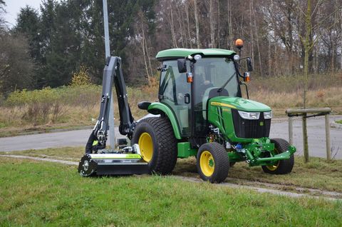VOGT Profitechnik aus Schmallenberg – Ihr führender Anbieter für professionelle Landschaftspflegetechnik = Mehrere VOGT-Standorte + 100 Servicepartner in Deutschland & Österreich = Eigener VOGT Lieferservice + mobiler VOGT Kundendienst = Schnelle und zuverlässige Ersatzteilversorgung innerhalb 24h = Hohe Qualitätsstandards und ausgezeichnetes Know-How seit 1926 GREENTEC Ausleger Typ: SCORPION 430-4 PLUS 4300 mm Reichweite horizontal 4100 mm Reichweite vertikal 2200 mm Transportbreite 155° hydr. Armschwenkung (Anfahrsicherung) ROTOR FLEX-Doppelgelenk (270° Kopfdrehung und 180° Kopfwinkel) AUTO FLEX (automatische Senkrechtstellung) LED-Beleuchtung , Gelenkwelle , Heckanbau KAT I / II Getriebe 540 U/min , Eigenhydraulik (max. Hydraulikleistung: 52 l/min bei 210 bar) Mindestgewicht Traktor: 2200 kg Inklusive : Hydraulischer Schnellkuppler (pro Einheit) SC 4 S&P Inklusive : Mech. Schnellwechsler SC 430 - Auslegerseitig Inklusive : Mech. Schnellwechsler FR 92-112 / SC 4S&P Inklusive : GREENTEC Mulchkopf Typ: FR92 900 mm Arbeitsbreite für Äste bis 40 mm ø Profi-Ausleger mit 155° Armdrehung und HYBRID-Armsystem = Sieger des AGRITECHNICA Innovation Award 2019 = extrem stabile Bauweise aus STRENX S700-Stahl erhöht die Lebensdauer = kompakte Bauweise mit guter Übersicht (nur 1220 mm Transporthöhe) = optimal geeignet für kleinere Traktoren und Radlader Patentiertes HYBRID-Armsystem (Doppelfunktion) = Einsatz des Auslegers sowohl mit als auch ohne Parallelführung möglich = Doppelfunktion der Armgeometrie erhöht Flexibilität und Schlagkraft = enorme Arbeitserleichterung und optimaler Bedienkomfort 155° POWER-Steuerung = hydraulische, doppeltwirkende Anfahrsicherung des Auslegearms = Auslegearm schwenkt beim Zusammenstoß mit einem Hindernis (z.B. Bäume, Steine, Leitpfosten, Zäune, Mauern etc.) nach hinten Hydraulische Vorwärtsreichweite des Auslegearms = Auslegearm kann seitlich des Schleppers nach vorne bewegt werden = maximaler Arbeitskomfort für den Bediener im professionellen Einsatz ROTOR-FLEX Drehgelenk = doppeltes Drehgelenk garantiert einzigartige Flexibilität = 270° horizontale Drehung des Arbeitswerkzeuges = 180° vertikale Neigungsverstellung des Arbeitswerkzeuge AUTO-FLEX Senkrechtstellung = automatische vertikale Positionierung des Drehgelenks = automatische Nivellierung des Arbeitsgerätes in senkrechter Position STRENX S700 Feinkornstahl = hochfester Spezial-Konstruktionsstahl STRENX S700 = 50% stärkere Zug- und Streckfestigkeit gegenüber gewöhnlichem Konstruktionsstahl bei gleichzeitig 25% Gewichtsersparnis HEAVY-DUTY-Armkonstruktion = verwindungssteife, großdimensionierte Armprofile = innenliegende Lamellenverstärkung für starke Armbelastungen = kräftige Hydraulikzylinder für hohe Beanspruchung DANFOSS-Hydrauliksystem (52 l/min bei 210 bar) = 40 PS Hydraulikanlage für optimale Leistung am Arbeitswerkzeug = 80 Liter Spezialöltank mit Zwangsdurchlauf = zwei Ölmengen über elektr. Schalter wählbar (40 l/min oder 25 l/min) Elektrisch-proportionaler Mini-Joystick (DANFOSS) = intuitive Steuerung des Auslegers = 3 Proportionalfunktionen (DANFOSS-Proportionalventil PVG 32/16) = mit LOGITEC SAFE-Bedienpult 4-Punkt-Montagesystem = 4 Befestigungspunkte am Hauptrahmen des Auslegers = 2 Befestigungspunkte an Unterlenkern = 2 Befestigungspunkte an Dreiecksrahmen in Verbindung mit Oberlenker oder K80-Kugelkopfkupplung Weitere Serienausstattung = Anbau verschiedenster Arbeitswerkzeuge möglich (Mulchkopf / Astsäge / Astschere / Heckenschere / Heckenmulcher) = robuste Stützfüße für einen sicheren Stand Schlegelmulchkopf für Ausleger / Bagger / Geräteträger = massives, doppelwandiges Mulchgehäuse aus STRENX S700 Stahl (wechselbare Innenhaube) = starke Zerkleinerungswirkung bis 40 mm maximale Materialstärke HEAVY-DUTY Hydraulikmotor = enorm durchzugsstark auch bei hoher Beanspruchung Anti-Kavitationsventil = verhindert Überlastung des Hydrauliksystems Doppelspiralrotor = optimale Sogwirkung durch doppelspiralförmige Schlegelanordnung Spezialschlegel = gehärtete Arbeitswerkzeuge für lange Standzeiten Für Rückfragen und weitere Informationen stehen wir Ihnen telefonisch oder per Mail jederzeit zur Verfügung. Bei näherem Interesse besuchen Sie gerne einen unserer VOGT-Vertriebsstandorte, damit Sie sich persönlich von der Leistungsstärke der Maschine überzeugen lassen können. Wir freuen uns auf Ihre Kontaktaufnahme! "SONDERPREIS auf Vorführmaschine" Gerätezustand: Vorführgerät Baujahr: 2024 Seriennummer: 224223068 Irrtümer, Änderungen und Zwischenverkauf vorbehalten.Kontaktdaten: