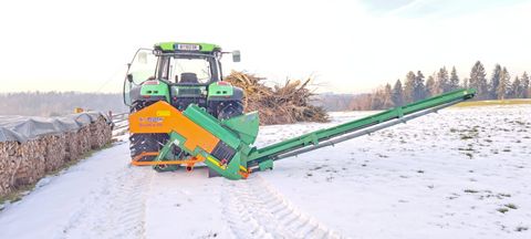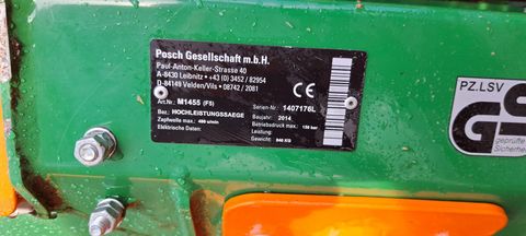 Posch Smart Cut 700 - Baujahr 2014 - 2-fach Teleskop Förderband 5m - Sägeblatt Durchmesser 700mm - 820kg Die vollautomatische Säge SmartCut von POSCH schneidet Scheit- und Rundholz im 2,4-Sekunden-Takt. Die Scheite werden in ergonomischer Höhe in die stillstehende Holzlade geschoben und rutschen durch Schwerkraft automatisch an den Holzlängenanschlag. Der gesägte Abschnitt wird mittels Förderband abtransportiert, das Restscheit rutscht wieder vor den Anschlag und der Zyklus startet von vorne.Eigengewicht (kg): 820