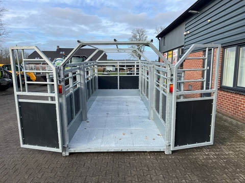 Nieuw uit voorraad leverbaar Jyfa NHY500 veewagen Volledig gegalvaniseerd 5 meter Hydraulische laadvloer LED verlichting Vanghek links en rechts Deur recht voorin. Machine nummer 82757Kontaktdaten:
