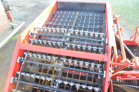 1 Vollständige EU-Typgenehmigung 1 Ausstattungspaket Comfort-Line 1 Anhängung Zugkugelkupplung Ø 80 mm 1 Gelenkwelle 1 3/8" mit 6 Zähnen 1 Antrieb mit Zapfwellendrehzahl 1000 U/min 1 Vollhydraulischer Antrieb aller Siebbänder und Trenngeräte 1 Direktantrieb 1 Reihenweite 75 cm 1 Aufnahmeweite: 600 mm 1 Halbe Dammtrommeln mit Kragen: Ø 390 mm 1 2-Blatt-Schar lang 1 Separat verstellbares Mittenschar anstelle von mittleren Sechscheiben 1 Steinsicherung für Spatenschar 1 Rodetiefenverstellung vom Terminal 1 Tiefenführung TerraControl 1 Automatische Dammmittenfindung 1 2 Sechscheiben 1 Zusätzliche Sechscheibe außen 1 Siebkanalbreite 1500 mm 1 1. Siebband Teilung 35 mm 1 1. Siebband mit Schlossverbindung 1 Teilungsunabhängiger Reibantrieb 1. Siebband mit Unterstützungswalze 1 V2A-Bleche im Schwingrahmen 1 Schwingklopfer im 1. Siebband mit Geschwindigkeitsverstellung vom Terminal 1 2. Siebband Teilung 32 mm 1 2. Siebband mit Schlossverbindung 1 Teilungsunabhängiger Reibantrieb 2. Siebband 1 Grobkrautband Abstand 200 mm 1 Rückhaltefeder vorne Grobkrautband Ausführung "stark" 1 Verstellung für Abstreifkämme vom Terminal 1 Krautwelle unter Grobkrautband 1 Ölkühler für Eigenhydraulik 1 Band 1. Trenngerät Teilung 40 mm 1 H-Profil Igelstab 1. Trenngerät 1 Abstreifer 1. Trenngerät Glattwalzen-Abstreifer 1 Neigungsverstellung 1. und 2. Trenngerät vom Terminal 1 Höhenverstellung Abstreifwalzen 1. Trenngerät vom Terminal 1 Winkelverstellung Abstreifwalze 1. Trenngerät vom Terminal 1 Schlupfüberwachung 1. Trenngerät und 2. Siebband 1 Beimengenabfuhrband hinter dem 1. Trenngerät 1 2. Trenngerät: Igelband mit Stäben 1 Band 2. Trenngerät Teilung 40 mm 1 H-Profil Igelstab 2. Trenngerät 1 Abstreifer 2. Trenngerät Glattwalzen-Abstreifer 1 Ausführung Abstreifer 2. Trenngerät: Dreifachabstreiferwalze 1 Geschwindigkeitsverstellung für 2 Bürsten- bzw. Fingerbänder vom Terminal 1 Neigungsautomatik 1. und 2. Trenngerät 1 Geschwindigkeitsverstellung 1. und 2. Trenngerät vom Terminal 1 Winkelverstellung Abstreifwalze 2. Trenngerät vom Terminal 1 3. Trenngerät: Igelband mit Platten 1 3. Trenngerät ClodSep (UB) -Trenngerät: zwei zweireihige Fingerabstreifbänder 1 Abstreifer 3. Trenngerät Glattwalze / Spiralwalzen-Abstreifer 1 Ausführung Abstreifer 3.Trenngerät: Doppelabstreiferwalze 1 V-Förmige Fingeranordnung für höhere Durchsatzleistung 1 Höhenverstellung des Fingerbandes rechts und links, vom Terminal 1 Höhenverstellung der Abstreifwalzen vom 2. Trenngerät vom Terminal 1 Mechanische Höhenverstellung der Abstreifwalzen vom 3. Trenngerät 1 Turbo Clean 1 Verlesetisch (1100 mm) 1 Komfortpaket Verlesetisch PRO 1 Beleuchtung für Verlesetisch 1 Verleseband mit Mitnehmern 1 Beimengenband Ausführung "Stabband" 1 Beimengenband regelbar, Differenzgeschwindigkeit zum Verlesetisch 1 Beimengenquerband reversierbar vom Terminal 1 Steinbunker mit Ablaufband 1 Vorsatzelevator mit Ultraschall-Sensor 1 8,0 t Bunker 1 Bunkerband mit Tuch 1 Schmieranlage für Bunkerkette 1 Bunkerbefüllautomatik inkl. Automatik für Vorsatzelevator und Befülloptimierung 1 Bunkerkopfabsenkung 1 Kartoffelauslauf am Rollbodenbunker für Kistenbefüllung/Fallbremse 1 Kartoffelauslauf für 2,20 m breite Kisten 1 Hydraulische Klappvorrichtung für Kartoffelauslauf 1 Druckluftbremse 1 Zulässige Höchstgeschwindigkeit 40 km/h 1 Automatische Achsmittenfindung und Neigungsautomatik 1 Bereifung 850/50 R30.5 1 Teleskopierbare Achse für das linke Hinterrad 1 Wetterdach ohne Seitenteile 1 Zentralschmieranlage (Deichsel, Bunker und Achse) 1 LED Umfeldbeleuchtung 1 Zubehör-Paket 1 Antriebsmedium Mineral-Öl 1 Load-Sensing Kit mit Steuerleitung zum Traktor 1 Premium Maschinenübergabe bei der GRIMME Landmaschinenfabrik in Damme 1 ISOBUS Grundausstattung 1 ISOBUS-Bedienterminal - CCI 1200 1 ISOBUS Bedienterminal - IBX 200 1 ISOBUS-Bediengerät - IBX 200 1 ISOBUS-Bediengerät - IBX 300 1 Memory Control 1 SmartView Monitor 1 Kamerapaket SmartView PRO 1 Visual Protect Pro - Funktionsüberwachung 1 Hydraulische Achslenkung - ausschließlich für den Feldbetrieb 1 Speedtronic-Web: Vorfahrtgeschwindigkeits- und lastabhängige Siebbandregelung 1 Speedtronic-Sep: Automatische Geschwindigkeitsverstellung der Trenngeräte 1 Anbindung an myGRIMME 1 myGRIMME Anwendung Live Informationen 1 myGRIMME Anwendung Jobs 1 2. Stützrad Terra Control 1 Dammmittenfindung über Schleifkufe - lose MitlieferungKontaktdaten: