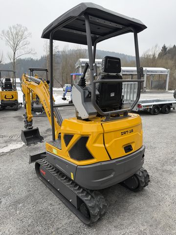 Minibagger IRT18 – 1800kg Der IRT‑18 ist ein zuverlässiger 1,8‑t‑Minibagger für intensiven Aushub und wechselnde Untergründe. LAIDONG KM385B mit 18,1 kW (2.600 U/min) treibt zwei Zahnradpumpen (31,2 + 7,8 l/min) bei 16 MPa an. Mit 2.170 mm Grabtiefe, 3.470 mm Reichweite und 30° Steigfähigkeit ist er für vielseitige Baustellen und schwer zugängliche Bereiche prädestiniert. Inklusive GRATIS: 40‑cm‑Grabenschaufel + Schnellwechsler