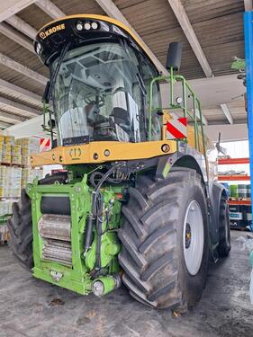 Geschwindigkeit: 40 km/h, Erstzulassung: 18.09.2025 ________ Selbstfahrender Feldhäcksler mit: Allrad Antrieb, Bereifung 800/70R38, 620/70R30, MaxFlow Gras: 36 Messer u. Gegenschneide Standard, Mais: 36 Messer u. Gegenschneide Spezial, Corn-Conditioner 123/144 Zähne, Ø 250 mm, OptiMaxx-Design, 30 % Drehzahldifferenz inkl. VariQuick, HD Gutfluß, Verschleißleisten für die untere vordere Einzugswalze, StreamControl - Elektrische Wurfweitenverstellung aus der Kabine, Automatische Anhängekupplung und Beleuchtungssteckdose 12 V, Zusatztank, Premium Komfort Kabine, Premiumsitz Activo, Full LED + Wartung/Aufstieg, Lenkautomatik (Häcksler), Vorbereitung externe Siliermittelanlage + Geregelte Siliermittelanlage inkl. Siliermitteltank (275 l), Vorbereitung für Montage einer Zusatzachse, Hydraulische Komfort-Vorsatzverrieglung mit Schnellkuppler, Zusätzliche Kamera für den Auswurfbogen, Automatische Gegenschneideneinstellung, Servicewagen für Häckseltrommel, Servicewagen für Einzugsaggregat, Paket aus Kraftstoffverbrauchmessung, ConstantPower, PowerSplit und Motor-Drehzahlmanagement 178 Arbeitsstunden Trommel- PDF Datenblatt