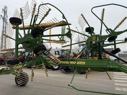 Bereifung (h): 15.0/55-17, Zustand-Bereifung (h): 100 %, Gezogen, Hydraulische Klappung, Weitwinkel-Gelenkwelle, Seitenschwader ________ Krone Swadro TS 620 neue Lagermaschine, sofort verfügbar - in serienmäßiger Grundausstattung - mechanische Höhenverstellung - Bereifung 15.0/55-17 - Gelenkwelle WWE - starre Zinkenarme