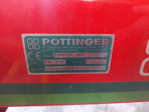 Sehr schöner Pöttinger Schwader EUROTOP 340 mit 10 Armen und 3 Zinken, Einachs, Tastrad, Schwadtuch, Gelenkwelle und Starren Anbaubock