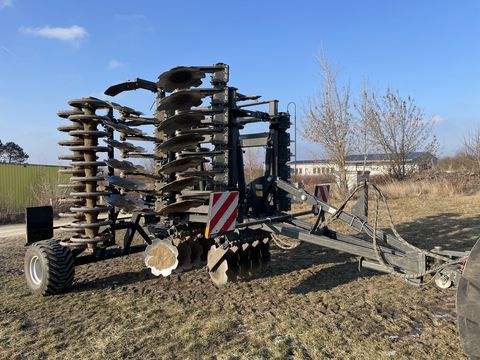 Agroland Titanium Heavy 450 Kurzscheibenegge Baujahr 2021 Arbeitsleistung ca. 800 ha Schwere Ausführung mit Fahrwerk Hydr. Klappbar Scheibendurchmesser 58 cm Reihenabstend 25 cm Arbeitsbreite 450 cm Manuelle Tiefeneinstellung Abstellstütze auf der Zugdeichsel Beleuchtung mit Warntafel Standort der Maschine 2135 Neudorf im WeinviertelHektar (ha): 800