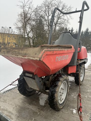 Der Neuson Dumper 1001 ist ein kompakter 1-Tonnen-Raddumper mit hydrostatischem Allradantrieb, angetrieben von einem Yanmar 3TNV76 Dieselmotor (18,9 kW, 25,7PS) Er zeichnet sich durch eine Nutzlast von (1.000kg) ,ein Transportgewicht von ca. (1.215-1260kg ) ausgestattet mit einer Hochkippmulde Ausschütthöhe bis (1,56m ) aus. Technische Hauptdaten: Motor: Yanmar 3TNV76 (3-Zylinder-Diesel).Leistung: 18.9KW = 25.7 PS , Nutzlast: 1.000kg Muldeninhalt: ca. 415kg gestrichen und 515L gehäuft. Betriebsgewicht: ca. 1.215 - 1.300kg Antrieb: Hydrostatischer Allradantrieb (Twin-Lock).Geschwindigkeit: Max.14 km/h.Auskipphöhe: 1.560mm Maße (L x B x H): ca. 3080mm X 990mm schmalbereift X 2.580mm(mitSchutzbügel). Steigfähigkeit: (45%). Hauptmerkmale: Kompaktheit: Besonders wendig für enge Baustellen.Hydraulik: Hydrostatischer Fahrantrieb. Wartung: Gute Zugänglichkeit zu den Servicekomponenten. Zustand mittel (Mittelgelenk etwas ausgeschlagen) dem Alter entsprechendKontaktdaten: