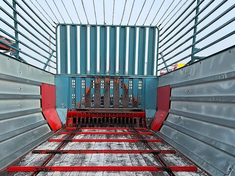 Hier sehen Sie einen gut erhaltenen Mengele Garant 435 Ladewagen aus dem Jahr 1989. !! Auf den Bildern ist etwas Eis zu sehen, da es an diesem Tag bei uns sehr kalt war !! Der Mengele Garant 435 hat ein Fassungsvermögen von 35 Kubikmeter bei mittlerer Pressung bzw von 23 Kubikmeter nach DIN. Die Ausstattung ist wie folgt: - neue!! und breite Bereifung in der Größe 19.0/45-17 - elektrohydraulische Bedienung ! - eigene Bordhydraulik ! - hydraulische Betätigung der Knick-Deichsel - hydraulische Betätigung der Pick-Up - hydraulischen Betätigung der Heckklappenöffnung - hydraulischer Kratzbodenantrieb - dieser ist auch vom Fahrzeugheck aus bedienbar - gefederte Tandemachse - Auflaufbremse mit Rückfahrautomatik ! - vier Förderschwingen - zweireihiges Silier-Schneidwerk mit 33 Messern - Weitwinkelzapfwelle Das zulässige Gesamtgewicht beträgt 8 Tonnen. Bitte vor Besichtigung kurz anrufen und einen Termin abstimmen. Dieser Mengele Ladewagen steht in 88483 Burgrieden. Inzahlungnahme und Lieferung möglich.