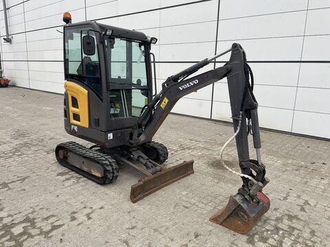 == More details (EN) == Classification: C Boom: Mono boom Attached equipment, digging arm: Digging bucket without teeth, Tiltmann, 1 hydr. udtag Wheel / undercarriage: Dozer blade front, Variable undercarriage Undercarriage: Rubber belts Track shoes width: 230 Battery (V): 12 Arm lenght: 1150 mm Working light rear on cab roof Working light front on cab roof Cabin roof light Drivers cabKontaktdaten: