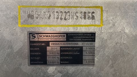 SCHWAIGHOFER Tandemkipper 13 to. Gesamtgewicht, Baujahr 2024 - sehr guter Zustand, Brückengröße 4810x2290mm aussen (4720x2170mm innen), 600mm Grund - und 600mm Aufsatzwand, hydr. Heckklappe, Bordwandverkleidung bei Grundbordwand, Flanschzugöse, Stützwinde 2-Gang, Werkzeugkasten, DL-Bremse mit ALB, Bereifung 445/45R19,5, Typisierung 25km/h LOF, Beleuchtungsschutz, sofort verfügbarZul. Gesamtgewicht (t): 13