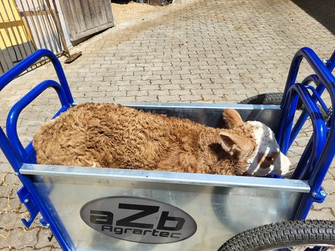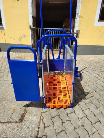aZb Kälbertaxi zum sicheren Kälbertransport übern Hof Das Kälbertaxi ist mit einer Fangvorrichtung ausgestattet womit auch medizinische Behandlungen wie zB.: Enthornungen möglich und sicher durchzuführen sind Funktionen des Kälbertaxis: - vorne und hinten zu öffnen - große Räder für einfaches fahren am Hof - Sicheres und leichtes Fahren auch auf unebenem Untergrund - die Fangvorrichtung sichert das Kalb - verzinkte Wände - einfache Reinigung dank Kunststoffgitterboden zuzüglich FrachtKontaktdaten: