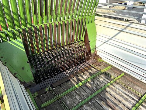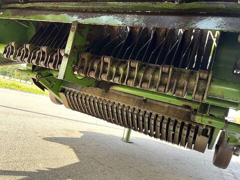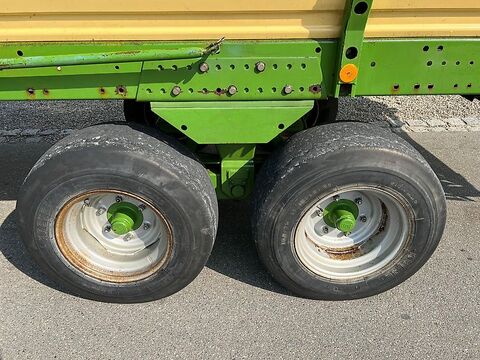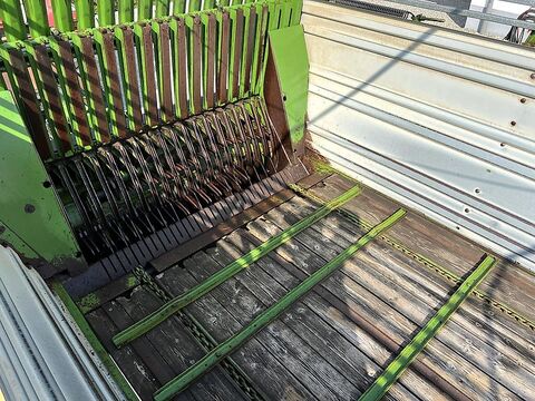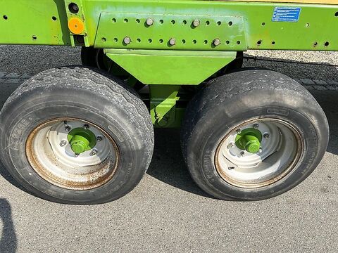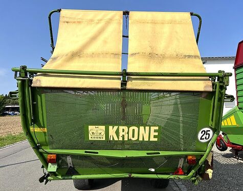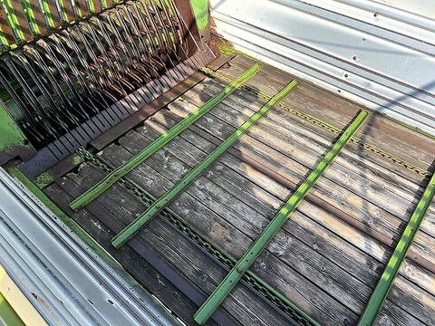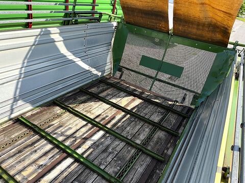 Hier sehen Sie einen Krone Titan 6/40 L Ladewagen aus dem Jahr 1992. Es ist mit seinen sechs überlappenden und lenkergesteuerten Förderschwingen ein leistungsstarker Ladewagen. Die letzten Jahre wurde er hauptsächlich zur Grünfutterbergung eingesetzt, daher hat er viele Rostmacken und der Kratzboden ist auch nicht mehr der allerbeste. Der Krone Titan 6/40 L hat ein Fassungsvermögen von 40 Kubikmeter bei mittlerer Pressung bzw von 26,5 Kubikmeter nach DIN. Durch die bei ihm verbaute Pendelachse eignet er sich auch gut für den Umbau zu einem Rückewagen bzw Forstanhänger ! Die Ausstattung ist wie folgt: - Bereifung in der Größe 15.0/55-17 - elektrohydraulische Bedienung - Silierschneidwerk mit 35 Messer - Messer hydraulisch ausklappbar - diverse Vorwahlmöglichkeit der eingelegten Messeranzahl ganz einfach durch einen Hebel... - verzinkte Pick-Up und verzinktes Prallblech - hydraulische Betätigung der Knick-Deichsel - hydraulische Betätigung der Pick-Up - hydraulische Betätigung der Heckklappe - hydraulische Betätigung des Kratzbodens bzw hydraulischer Kratzbodenantrieb - mit Bedienmöglichkeit vom Wagenheck aus - sechs lenkergesteuerte Förderschwingen - Weitwinkelzapfwelle - Pendeltandemachse mit großer Bodenfreiheit - Auflaufbremse mit Rückmatic - Tasträder an der Pick-Up mit Schnell- bzw Zentralverstellung - Stützrad mit zweiter Getriebeabstufung Das zulässige Gesamtgewicht beträgt acht Tonnen. Bitte vor Besichtigung kurz anrufen und einen Termin vereinbaren. Dieser Krone-Ladewagen steht in 88483 Burgrieden. Lieferung möglich.