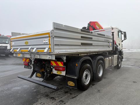 MAN TGS 28.520 6X4-4 BL PALFINGER PK26002EH-D MEILLER-Dreiseitenkipper Erstzulassung: 23.05.2025 aktueller Kilometerstand: 23.000 km • Automatikgetriebe • ZF-Intarder • 520 PS • NN Fahrerhaus • Antrieb: 6x4 • Zuschaltbarer Antrieb 1. Achse • Differenzialsperre an 1. und 2. Achse • lenk- und liftbare Nachlaufachse • Abgasnorm: EURO 6e • Luftgefederte-Fahrerhausfederung • Aluminium-Dieseltank • Bauaufstieg fahrerseitig • Sonnenblende • 2 x LED-Rundumkennleuchten am Fahrerhausdach • 2 x LED-Arbeitsscheinwerfer am Fahrerhausdach hinten • 2 x LED-Blitzleuchten in der Frontmaske • 2 x LED-Blitzleuchten am Fahrzeugheck • Drucklufthupen am Fahrerhausdach • Rückfahrkamera • Fahrerkomfortsitz • Multifunktionslenkrad • Tempomat • Navigationssystem • Bedienfeld MAN EasyControl, 4 Funktionen bei offener Tür • Klimaautomatik • Standheizung • Kühlschrank • Anhängerkupplung mit Anhängerausrüstung • Werkzeugkisten • MAN EasyStart Wegrollsicherung • kurzer Radstand • Breitreifen 1. und 3. Achse PALFINGER PK26002EH-D Frontkran • 5 hydraulische Ausschübe • Funkfernsteuerung • Hochstand mit Ablagepult • 180° hydraulisch hochschwenkbare Stützen • aktives Schwingungsdämpfungssystem AOS • Lasthaken • Unterlegsplatten mit Halterung Optional: • Zweischalengreifer • Rotator • Rotatorhaken MEILLER-Dreiseitenkipper • Innenmaße: 4.800 x 2.450 x 800 mm • Containerbreite • 2-schalige Stahlbordwand • hydraulische Bordmatik an linker Seitenwand • hydraulische Bordwandverschlüsse an linker Seitenwand • hydraulische Gesteinsklappe hinten • ohne Ecksteher hinten • rechte Bordwand klappbar • ausziehbarer Leiterträger in der Stirnwand • 5 Paar Zurrösen im Brückenboden versenkt • 4 Stück Zurrösen in der Stirnwand • Netzhaken an den Bordwänden • Kupplungsmaul in der Stirnwand • Alu-Leiter mit Halterung • klappbarer Unterfahrschutz Finanzierung - Leasing / Mietkauf / Miete - möglich!Laufleistung (km): 23200