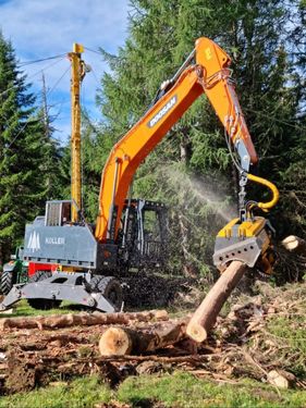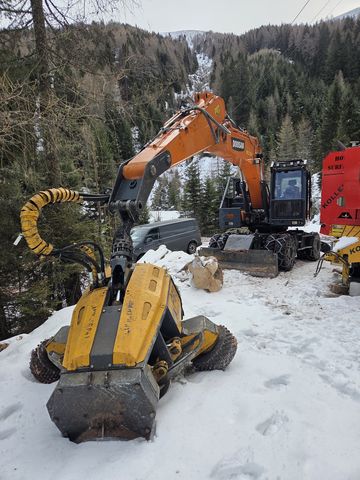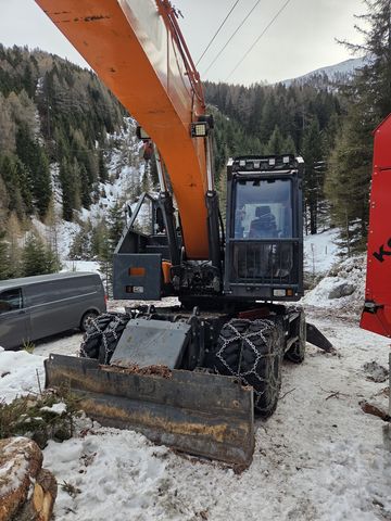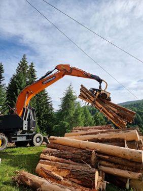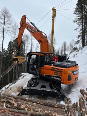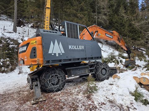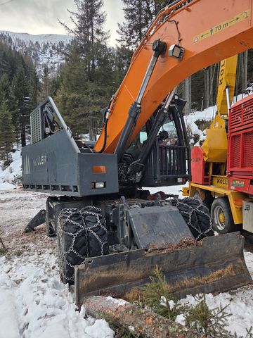 Prozessorbagger Doosan DX210 W-5 + P60 Mobilbagger Gebrauchtmaschine BJ 2020, aktuell ca. 7500h zuletzt serviciert und überprüft im Jänner 2026 Aufbau Doosan DX210 W-5 - Sicherheitsverglasung Frontscheibe - Hubzylinderschutz - Hydraulikölkühler - Rückleuchtenschutz - Forstverbau Kabine + Seitenverbau - Sicherungsdornset - Prozessoraufnahme fix verbolzt #Doosan #Woody #Develon #Prozessorbagger #Harvester #Gebirgsharvester #Koller #P60 #ForstbaggerKontaktdaten:
