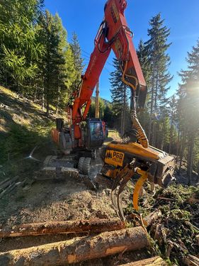 Prozessorbagger Hitachi ZX210W-3 + P60 Gebrauchtmaschine Mobilbagger: BJ: 2014 Bh: ca. 8500h Prozessorkopf Koller P60: BJ: 2020 Bh: ca. 5500h Aufbau Hitachi ZX210W-5 - Sicherheitsverglasung Frontscheibe (vorgesetzt) - Hubzylinderschutz - Rotator Black Bruin - Hydraulikölkühler - Rückleuchtenschutz - Forstverbau Kabine - Sicherungsdornset - Prozessoraufnahme fix verbolzt - Anhängemaul an Planierschild #Doosan #Woody #Develon #Prozessorbagger #Harvester #Gebirgsharvester #Koller #P60 #Forstbagger #HitachiKontaktdaten: