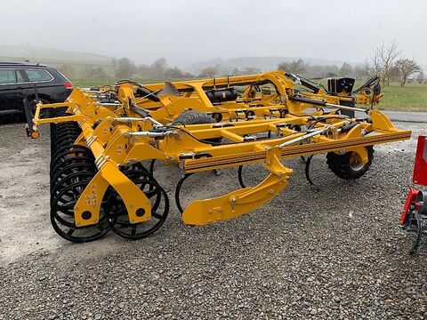 5 balkiger Flachgrubber mit Zinken 70x12mm für leichte und mittlere Böden bis 10cm Arbeitstiefe oder 3D-Vierkantzinken 30x30 mm für mittlere bis schwere Böden bis 15cm, Mit Schmalscharen oder Gänsefußscharen Verstärkter 5-balkiger Rahmen mit Profil 80x80 Großer Durchgang unter dem Rahmen von 60 cm Arbeitstiefe: 5 bis 15 cm Hydraulische Tiefenführung mit Clips, Vordere Tiefenführungsräder syncronisiert mit hydraulisch tiefengeführter Walze, Hydraulische Verriegelung, Hitchkupplung (Ø 50mm) und Hydraulische Deichsel, Warntafeln mit reflektierenden Schildern und Beleuchtung vorn klappbar, Transporträder 480/46-17, 2-Kreisdruckluftbremse. Zusatzausstattung gegen Aufpreis möglich. Auch in 6 m Arbeitsbreite oder als Angebaute Maschine von 4 bis 7 m erhältlich. Fordern Sie unsere Prospekte an. Wir beraten Sie gerne. Besuchen Sie unsere ständige Ausstellung auf unserem Gelände und auf den Messen vom 06.03.26 - 09.03.26 Frühlingsmesse Ostheim 09.04.26 - 12.04.26 AGRA Leipzig Wir freuen uns auf Ihren Besuch! ! Technische Daten und Bilder können unterschiedlich sein ! Preise aufgrund der aktuellen Situation unter Vorbehalt!