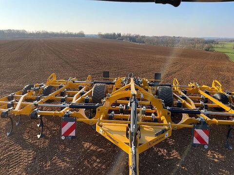 5 Balkiger Flachgrubber mit Zinken 70x12mm für leichte und mittlere Böden bis 10cm Arbeitstiefe oder 3D-Vierkantzinken 30x30 mm für mittlere bis schwere Böden bis 15cm, Mit Schmalscharen oder Gänsefußscharen Verstärkter 5-balkiger Rahmen mit Profil 80x80 Großer Durchgang unter dem Rahmen von 60 cm Arbeitstiefe: 5 bis 15 cm Hydraulische Tiefenführung mit Clips, Seitliche Tiefenführungsräder 320/60-12 syncronisiert mit hydraulisch tiefengeführtem Fahrwerk, 3 Reihiger Heckstriegel Ø13x660mm mit Neigungsverstellung Hydraulische Verriegelung, Hitchkupplung (Ø 50mm) und Hydraulische Deichsel, 2-Kreisdruckluftbremse, Warntafeln mit reflektierenden Schildern und Beleuchtung vorn klappbar, Transporträder 480/46-17. Zusatzausstattung gegen Aufpreis möglich. Auch in 6m Arbeitsbreite oder als Angebaute Maschine von 4 bis 7 m erhältlich. Fordern Sie unsere Prospekte an. Wir beraten Sie gerne. Besuchen Sie unsere ständige Ausstellung auf unserem Gelände und auf den Messen vom 06.03.26 - 09.03.26 Frühlingsmesse Ostheim 09.04.26 - 12.04.26 AGRA Leipzig Wir freuen uns auf Ihren Besuch! ! Technische Daten und Bilder können unterschiedlich sein ! Preise aufgrund der aktuellen Situation unter Vorbehalt!