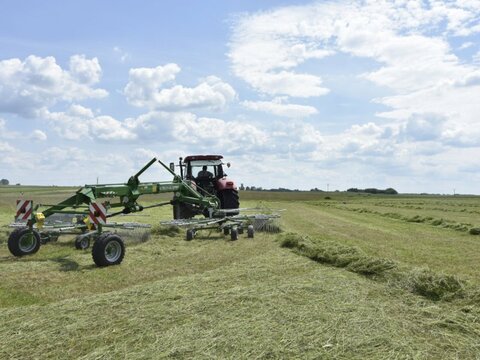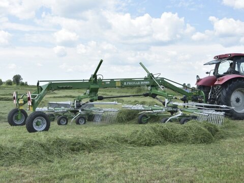 Jetzt in die Zukunft investieren und Steuerlich profitieren ! Mit je 30% Sonderabschreibung in den ersten drei Jahren möglich ! Keine komplizierten Förderanträge ! – die steuerliche Umsetzung erfolgt über Ihren Steuerberater Pronar Schwader - Typ: ZKP 801 - Arbeitsbreite ca. 7,26m - 7,97m - Gesamtlänge ca. 8,6m - Breite in Transportstellung ca. 2,8m - Kreiselanzahl 2 - Trägerarme je Kreisel 13 - Doppelzinken je Trägerarm 4 - 6 Tasträder je Kreisel - Tasträder 16x6,5-8 - Kraftbedarf ca. 80 PS - Zapfwellendrehzahl 540 U/min - Gewicht ca. 2600kg - Fahrwerk 340/55-16 Optional: - Zinkenverlustsicherung Bilder können Zusatzausstattung beinhalten. Gerne bieten wir ihnen die komplette Gründlandtechnik von Pronar an Fragen Sie bei uns an Mähwerke, Heuwender und Schwader in verschiedenen Breiten Gerne können wir Ihnen eine Finanzierung über eine Partnerbank anbieten.Kontaktdaten: