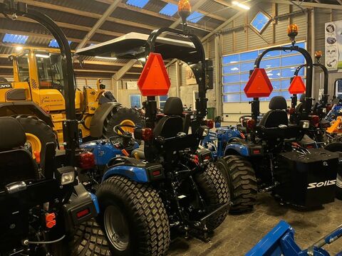 == Flere oplysninger (DK) == Antal gear frem/bak: Hydro Er til salg: Til salg nu Stand: Som ny Demo Solis 26 HST det er en årg. 2025 og den er klargjort igen så den kan komme direkte ud og køre igen. Den har en nypris på 120.800DKK sådan som den er udstyret med klipper og tag. Klipper på 150cm der trækkes af traktorens midterPTO og løftes af liften. Bliv godt kørende med en klipper fra Solis på 150cm. Kvalitets minitraktor fra Solis med 26 hk og 3 cylindre Mitsubishi dieselmotor. Den har en 4wd foraksel med servostyring og en egenvægt på 1055kg. I bag er der en CAT I-N lift med justerbare sidestabilisatorer på liftarmene samt løftekapacitet på 600 kg 1 dobbeltvirkende fjernudtag svingbart gaffeltræk og 540 omd. PTO. Der er også PTO midt på traktoren der kører 2100 omd. Bagakslen er med differentialespær og oliebadet bremser som kræver minimal vedligeholdelse. Gearkassen er en Hydrostat gearkasse med cruise control. Dens tophastighed er fra 17,4 km/t til 20 km/t ved 2700 omd. alt efter hvilken dækmontering der vælges. El-anlægget er 12 volts anlæg med kørelys arbejdslys og 7-polet anhængerstik. Traktoren har E-godkendt styrtbøjle og kan selvfølgelig leveres indregistreret med nummerplade hvis det ønskes. Det er en mekanisk traktor hvor drift sikkerheden og lave maskinomkostninger er sat i højsædet. Så det er en traktor som er perfekt til brug på planteskoler hos anlægsgartnere rideskoler mindre landbrug og andre steder. Den kan monteres med en original frontlæsser på i traktorens farve med parallelføring solis-hurtigskifte 3die funktion og joy-stikstyring af læsseren VendegearKontaktdaten: