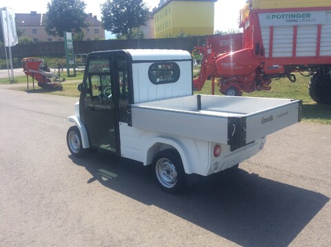 Mit europäischer Straßenzulassung (L7e) Technische Daten: Abmessungen (L/B/H): 3154/1365/1671 mm Reichweite: bis zu 115 km Motorleistung: 5 KW AC Motor/60 V Zuladung: bis zu 500 kg Geschwindigkeit: bis zu 45 km/h Ladeflächenmaße (L/B/H): 1500/1300/265 Grundausstattung: - Komplett geschlossene Kabine - Radio - Pritsche kippbar - E-Heizung - Klimaanlage Um Ihnen unnötige Wartezeiten oder Wegstrecken zu ersparen, bitten wir Sie um vorherige Kontaktaufnahme, falls Sie eine unserer Maschinen besichtigen bzw. Probe fahren wollen. Wir stehen Ihnen zu unseren normalen Öffnungszeiten gerne zur Verfügung! Gegen vorheriger Terminvereinbarung können Sie auch außerhalb unserer Öffnungszeiten Maschinen besichtigen und kaufen! Wir freuen uns auf Ihren Anruf!Kontaktdaten: