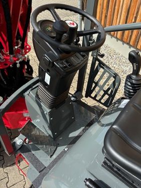Motor: Perkins 25PS Betriebsgewicht: 1630kg Antrieb • Fahrtrichtung wählbar über Joystick • Betriebsbremse: Getriebetrommelbremse auf Hinterachse wirkend • Zentrale Betriebs- und Feststellbremse im Antriebsstrang auf alle 4 Räder wirkend Hydraulik • 3. Steuerkreis vorne DN10 • Schwimmstellung für Hub- und Kippzylinder • Arretierung für Steuerventil Fahrerstand • Fahrerschutzdach mit Rückhaltesystem ROPS / FOPS geprüft • Betriebsstundenzähler, Kraftstoffanzeige Sonderausstattung: - Fahrerschutzdach klappbar - Arbeitsscheinwerfer vorne / hinten - Ein Arbeitsscheinwerfer zusätzlich an der Ladeschwinge - hydrostatischer Allradantrieb - Bereifung 26.0x12.00-12 AS ET0 (breite 1070mm) - SWP Weidemann hydraulisch (auf Wunsch auch Euro) - Hydraulikölkühler - Ballastgewicht Heckanbau (96 kg)